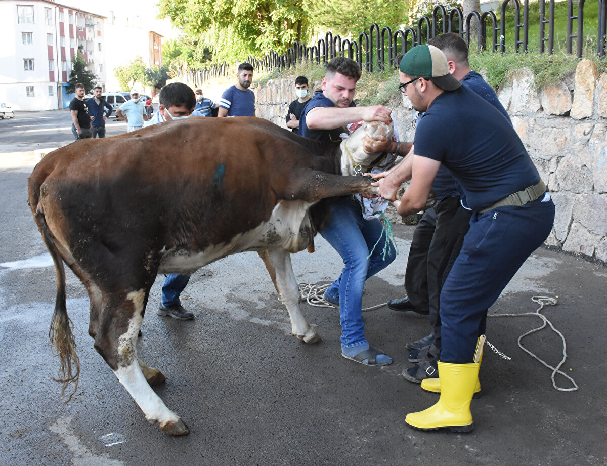 Kurbanlık hayvanları kesmek isterken yaralanan acemi kasaplar, soluğu hastanede aldı.