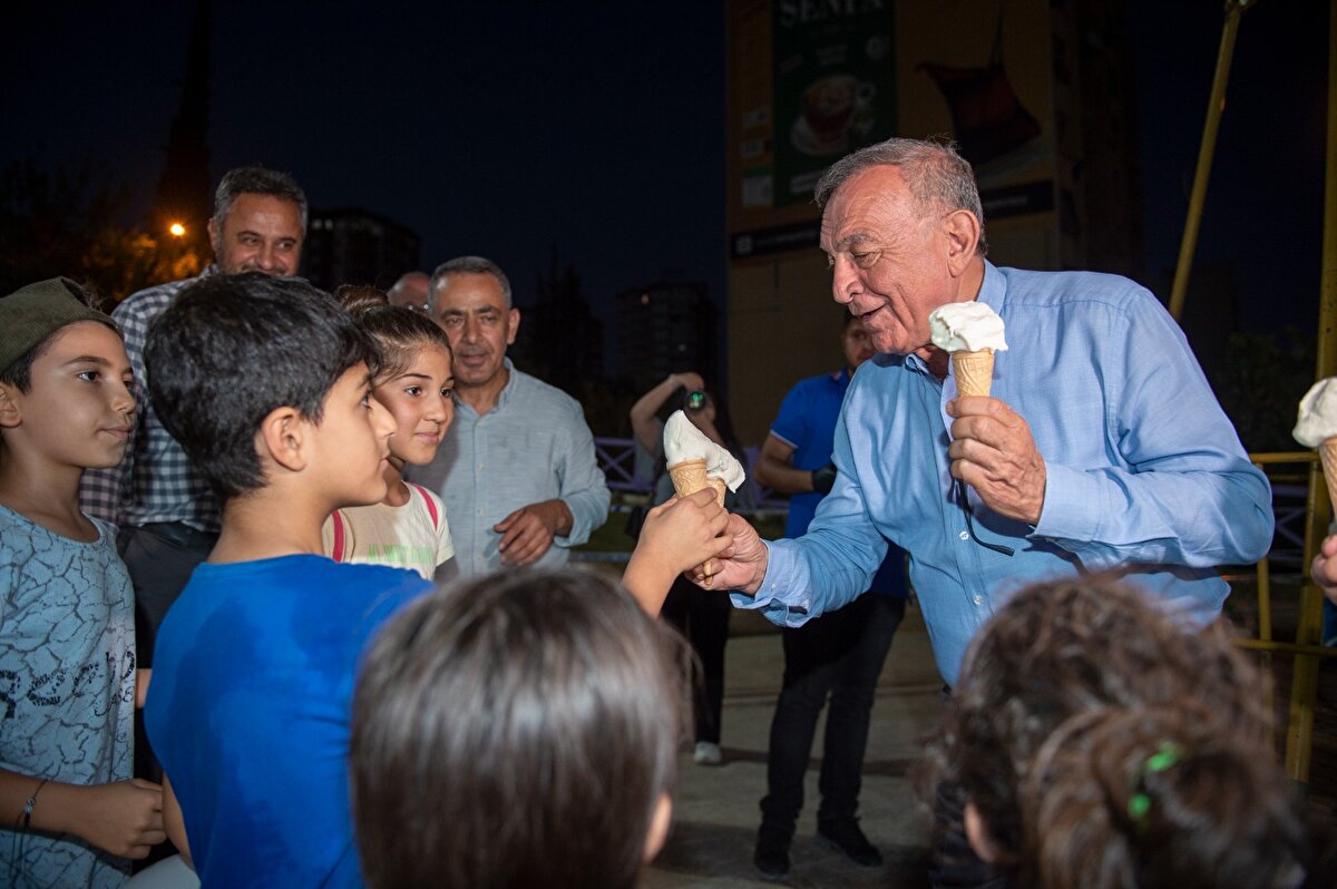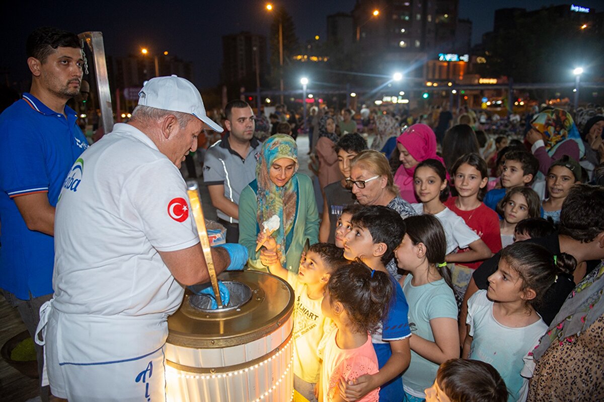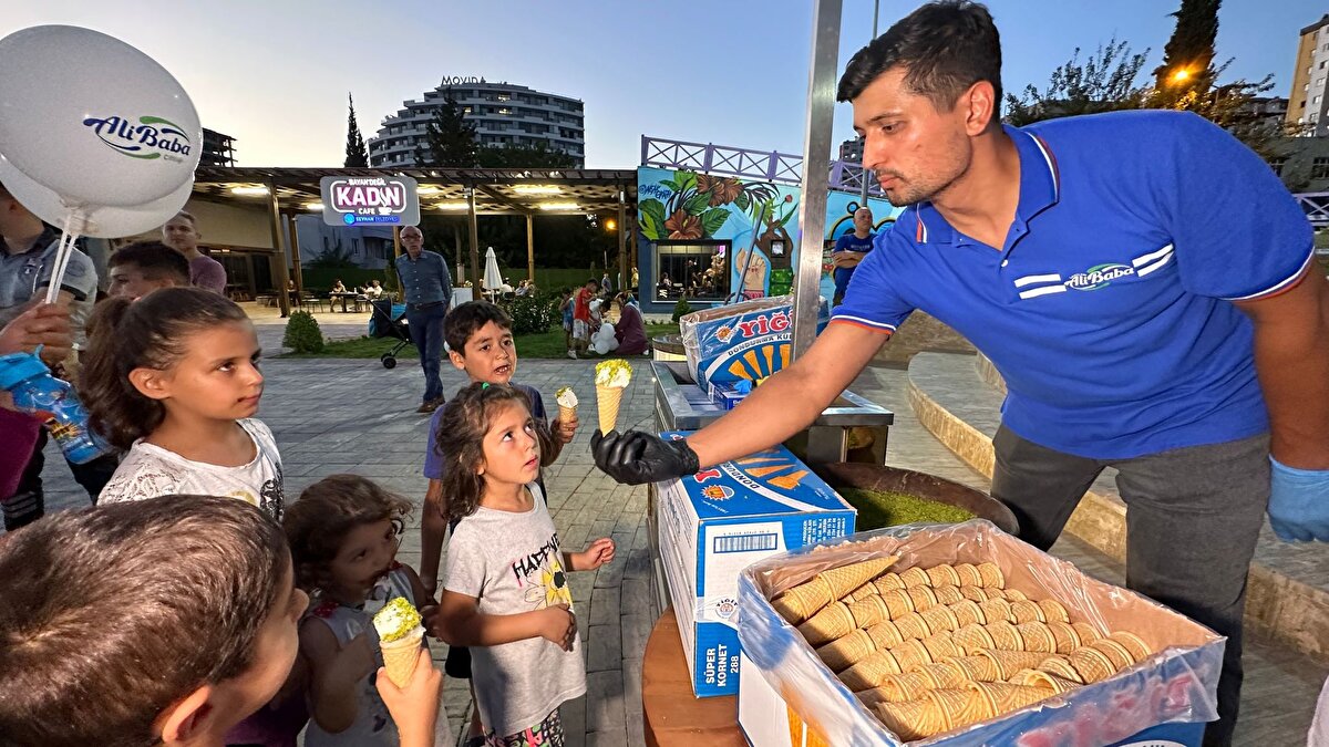 Adana Seyhan Belediyesi, gölgede 40 dereceyi aşan sıcak hava nedeniyle dondurma dağıtımı etkinliği düzenledi. Etkinlikte, dondurma kuşbaşı et gibi doğranıp şişe takılarak 'dondurma kebap' yapılıp vatandaşlara dağıtıldı.