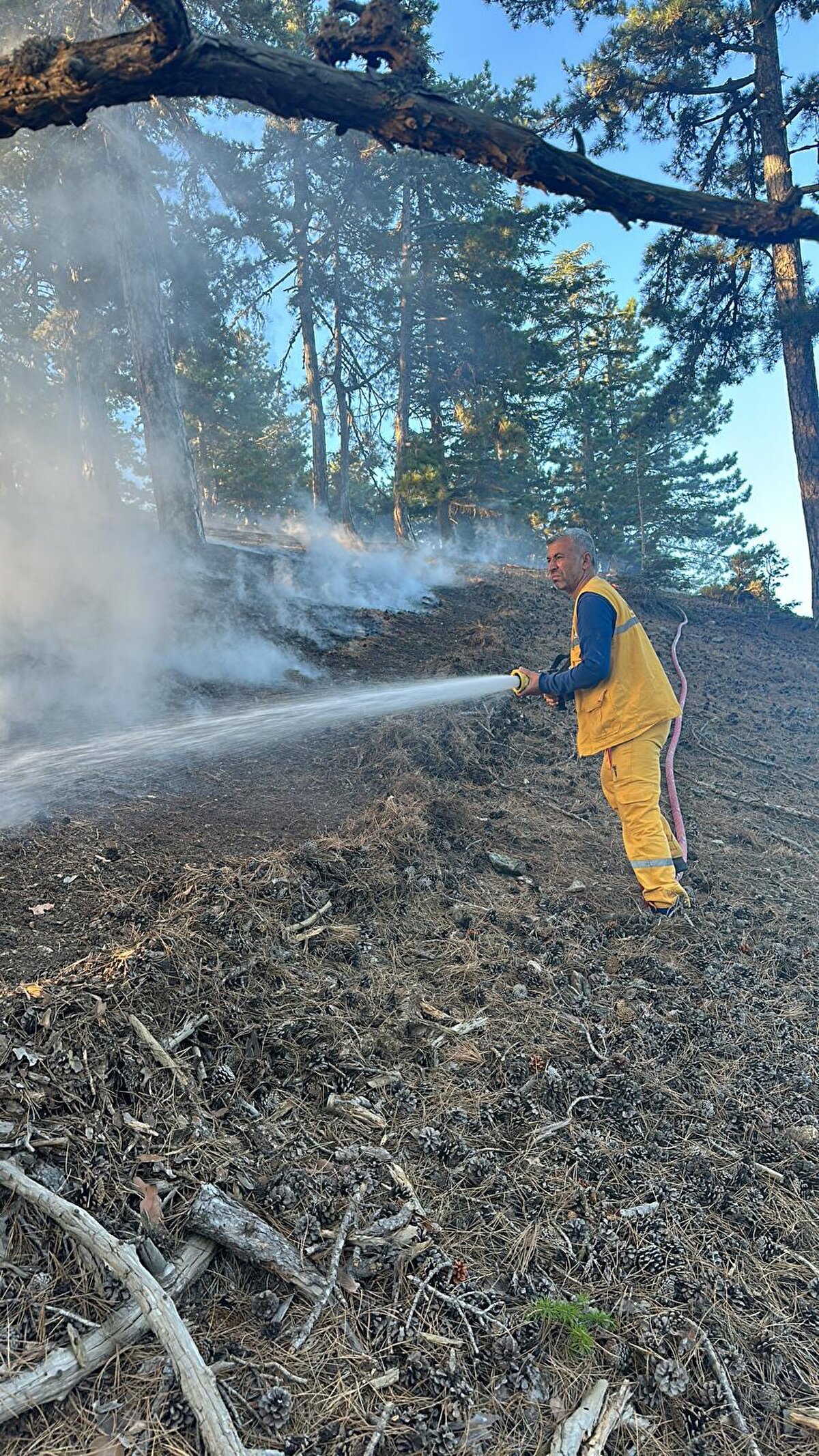 Ekipler, havadan ve karadan müdahaleyle yangını kontrol altına aldı.<br><br>