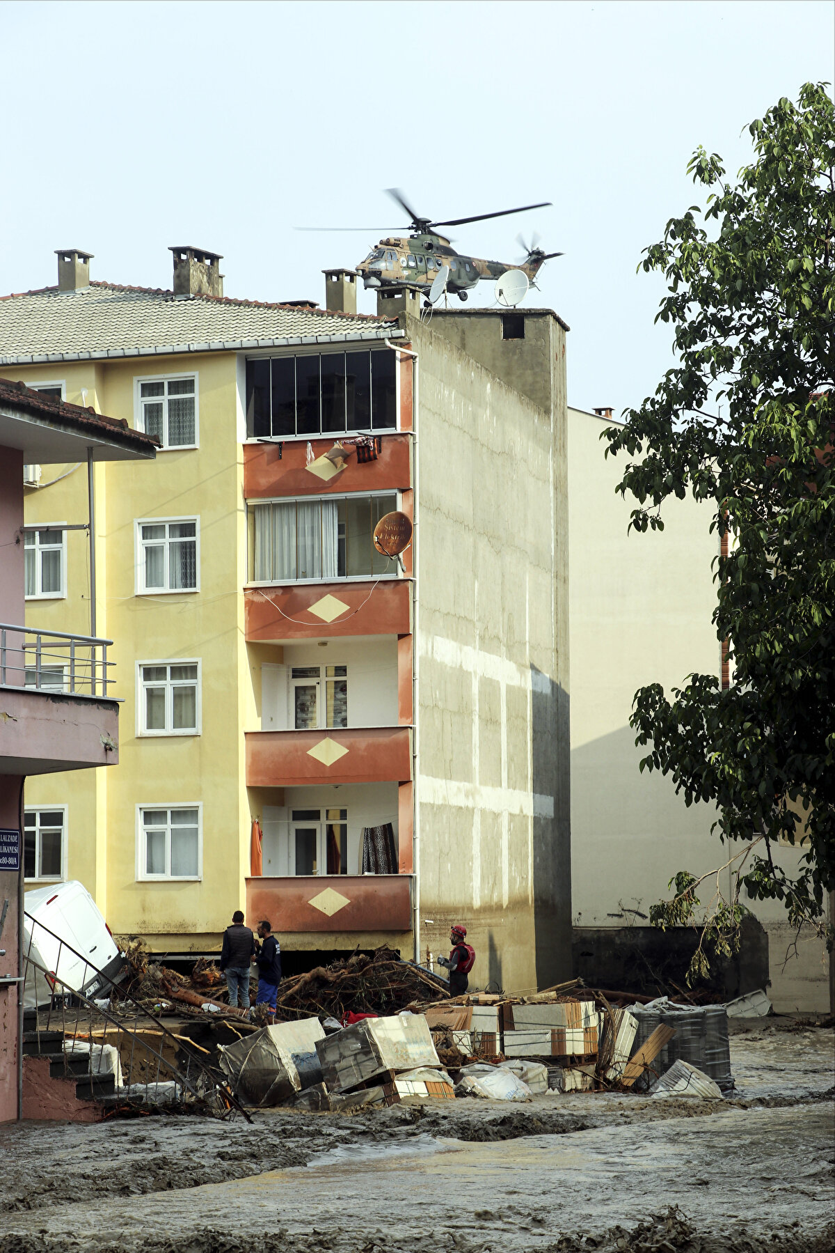 Açıklamada, Bartın; Ulus İlçesi Zaferköy Ağdacı Mahallesinde sel afeti sonrası 300 afetzede güvenli bölgelere tahliye edilmiştir. Kastamonu; Cide İlçesi Çayüstü köyü Güzel ve Merkez mahallelerinden 210 vatandaşımız tahliye edilmiştir. Bozkurt ilçesinden 2 helikopter ile Abana ilçesinde afetzedelerin tahliye faaliyeti devam etmektedir. Sinop; Ayancık ilçesi Babaçay, Zaviye, Söküçayırı ve Yenikonak köylerinden 106 afetzede 2 helikopter aracılığıyla tahliye edilmiştir. Ayancık ilçesinden 2 Sahil Güvenlik, 2 Kara Kuvvetleri helikopteri ile tahliye çalışmaları devam etmektedir. Ayrıca Ayancık Devlet Hastanesi'nde tedavi gören hastaların tamamı tahliye edilmiş olup, hastanede tedavi gören hasta bulunmamaktadır denildi.