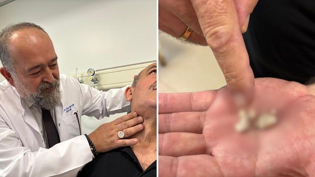 Antalya'da boynunda şişlik ve ağızdan taş gelmesi şikâyetiyle hastaneye başvuran 55 yaşındaki Metin Paçacı'nın tükürük bezinde, en büyüğü 2 santimetre olan 5 taş tespit edildi. Yaklaşık 6 santimetreye ulaşan kitle nedeniyle yapılan ameliyatta tükürük bezi, taşlarla birlikte alındı. Operasyonun ardından hastanın sağlık durumunun iyi olduğu bildirildi.