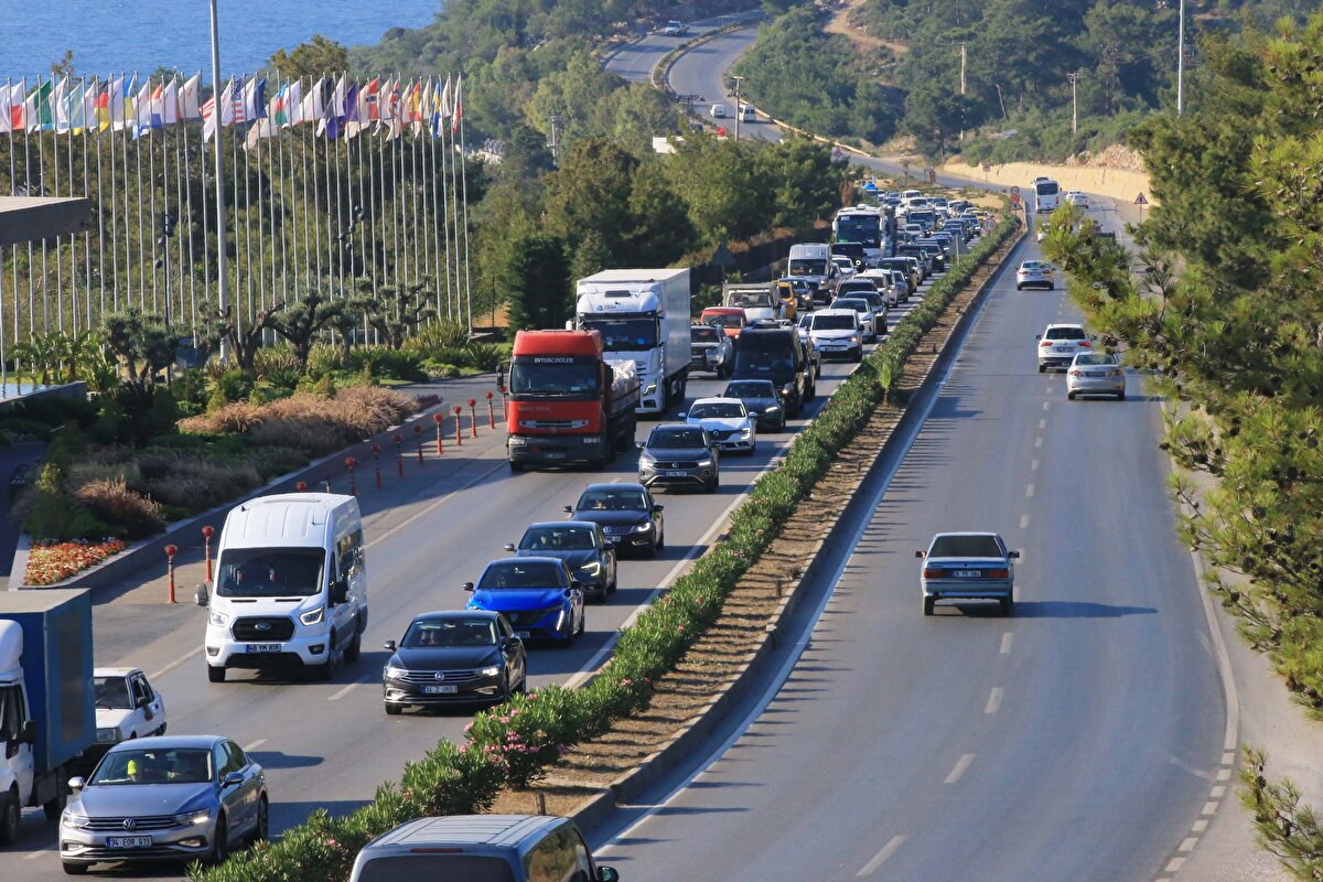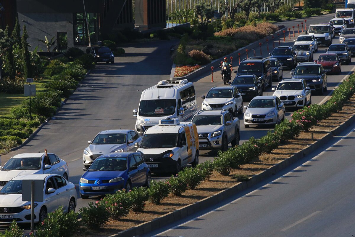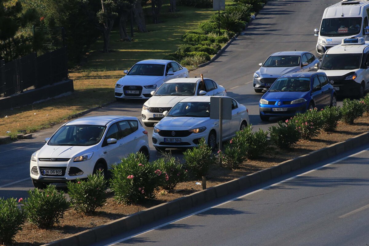 Bayram tatiline gelenler nedeniyle ilçe merkezine yakın kesimlerde uzun araç kuyrukları oluştu.