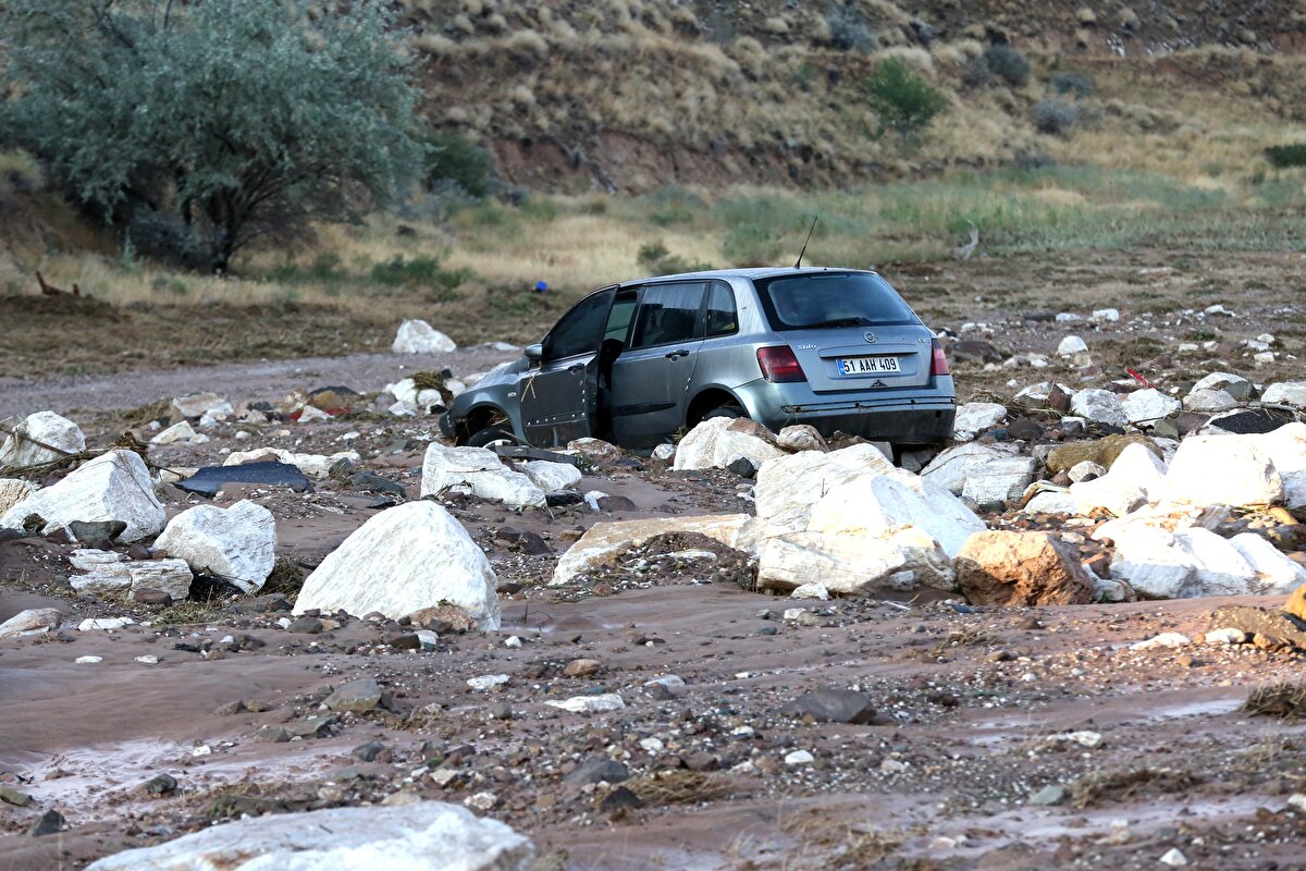 Aksaray'da dün akşam başlayan sağanak sonrası selin zarar verdiği alanlar görüntülendi.