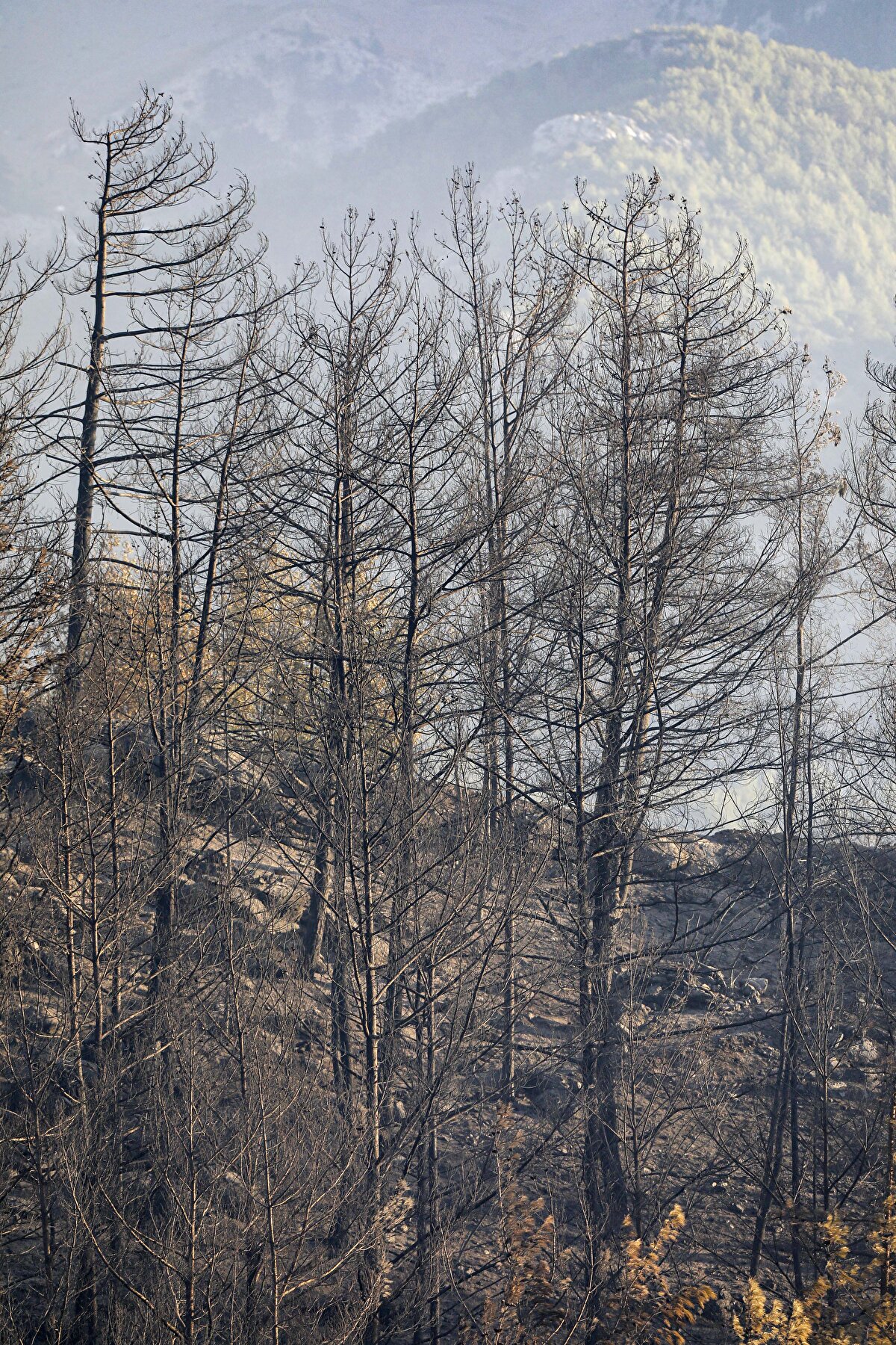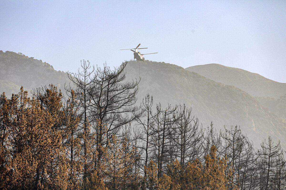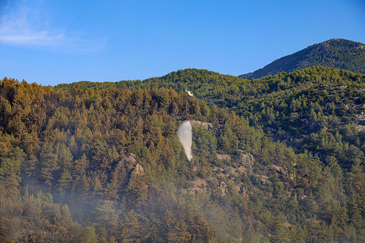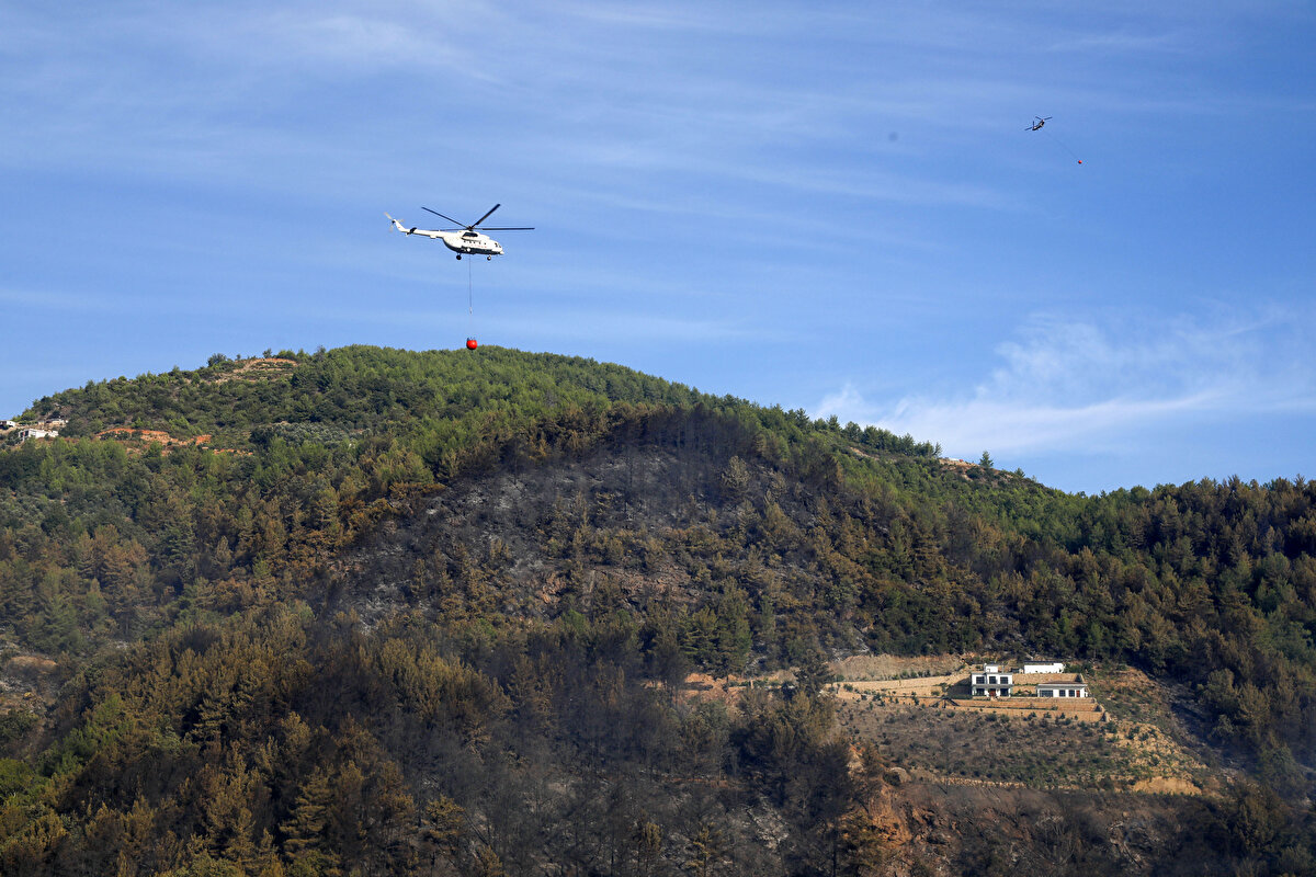 11 helikopter, 10 yangın söndürme uçağı ve 500'ün üzerinde yangın söndürme işçisinin müdahale ettiği yangında dün akşam saatlerinde havanın kararmasıyla birlikte havadan müdahaleye ara verildi.