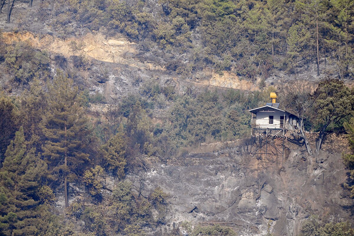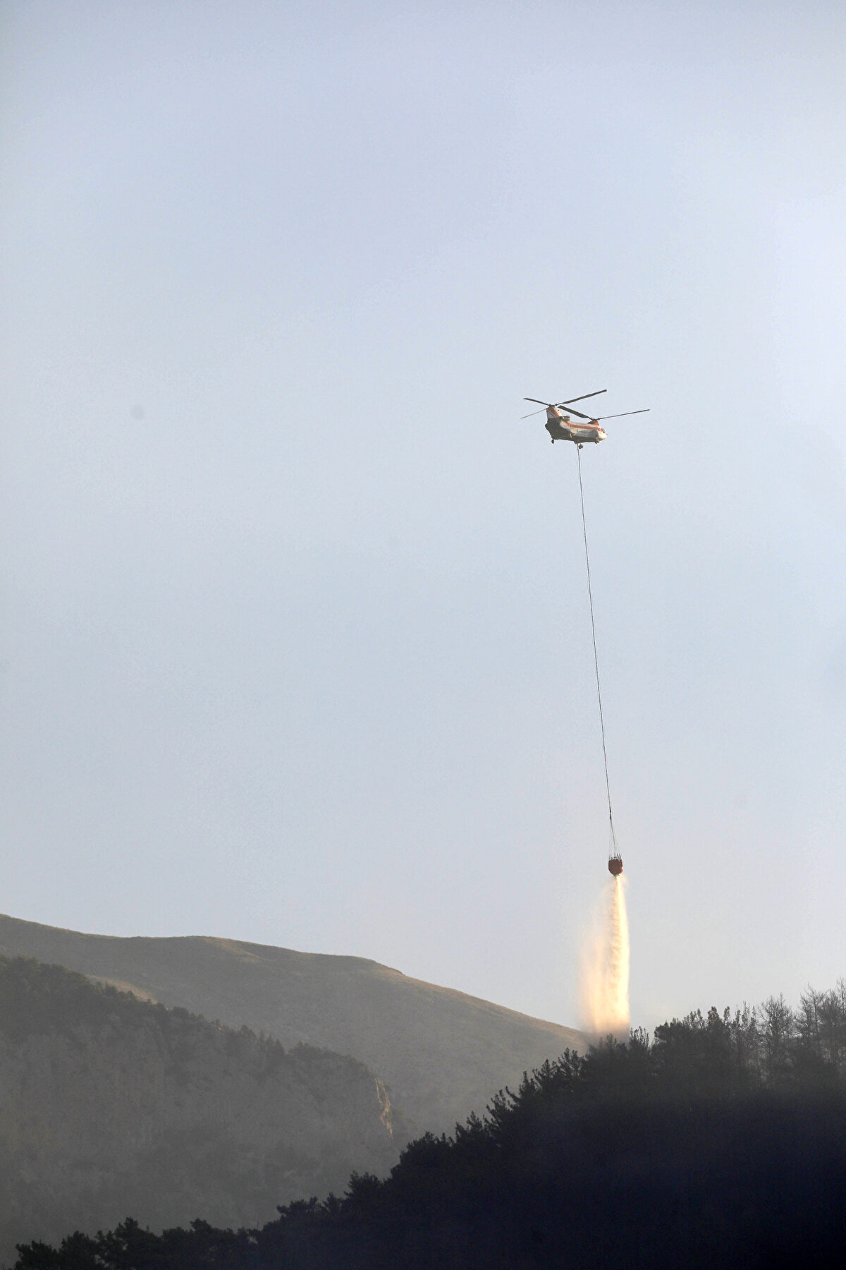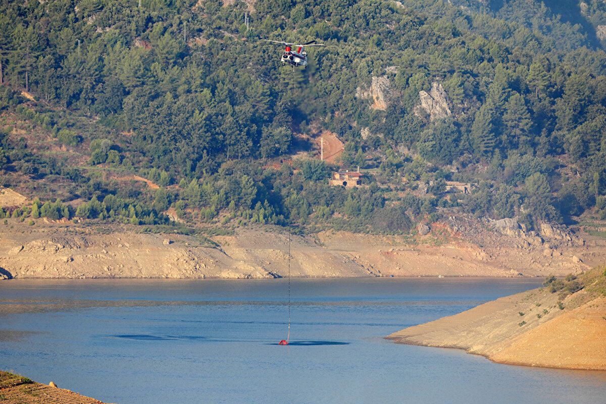 11 helikopter, 10 yangın söndürme uçağı ve 500'ün üzerinde yangın söndürme işçisinin müdahale ettiği yangında dün akşam saatlerinde havanın kararmasıyla birlikte havadan müdahaleye ara verildi.