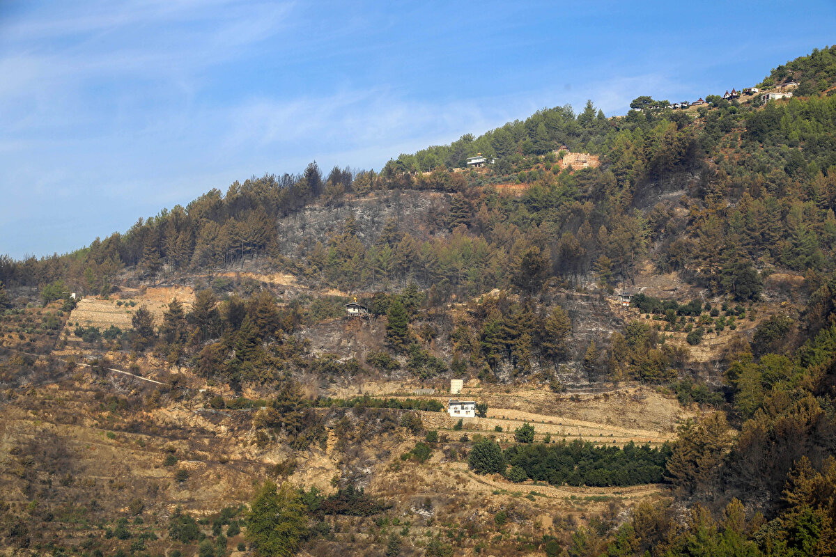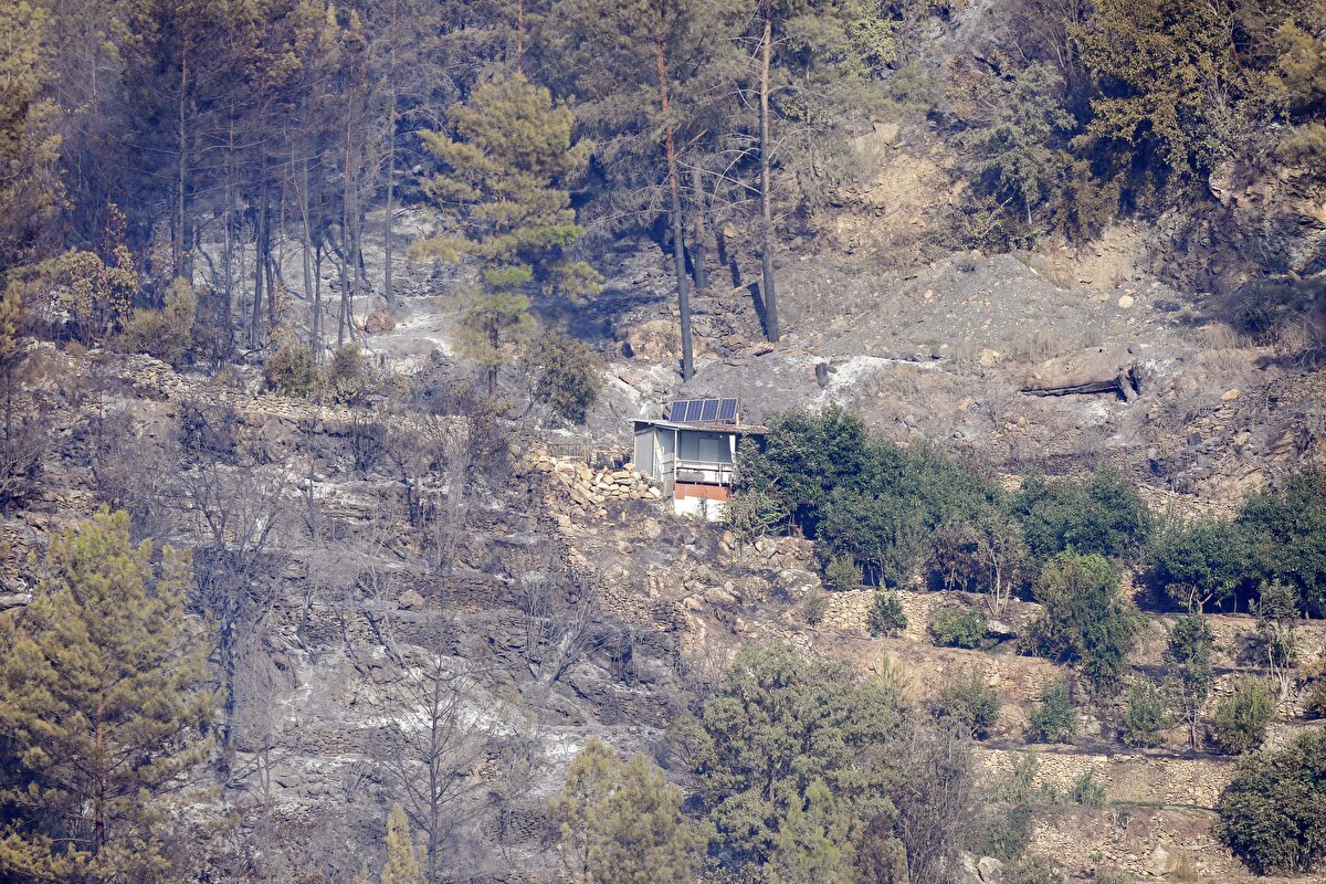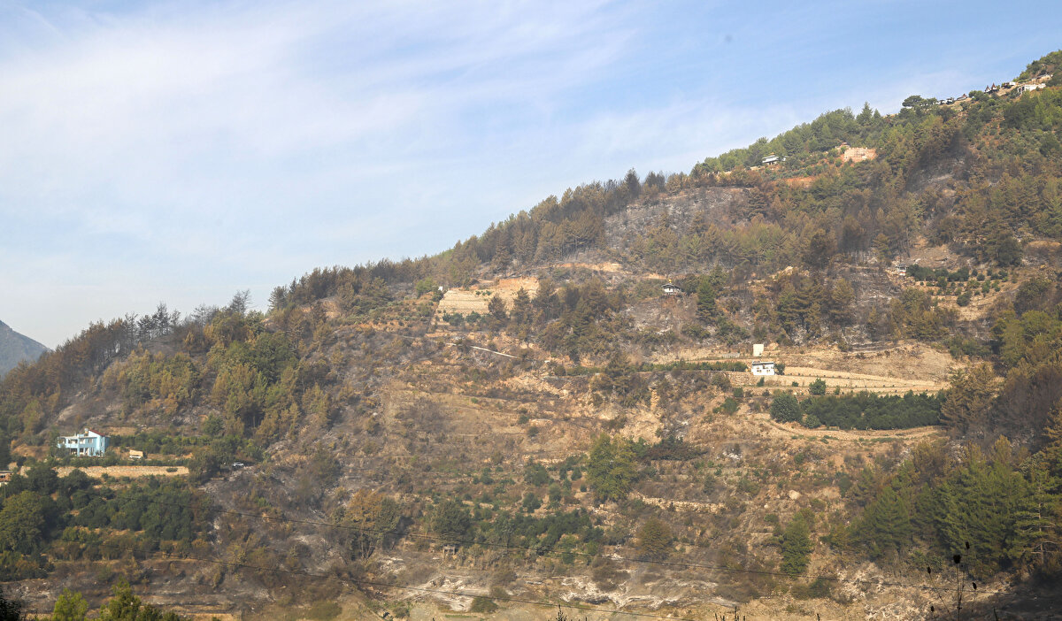 Antalya'nın Alanya ilçesinde dün başlayan orman yangınını kontrol altına alma çalışmaları 2'nci günde de devam ediyor. Yangında tahliye edilen 17 evin çevresindeki ormanın tamamen yandığı görüldü.
