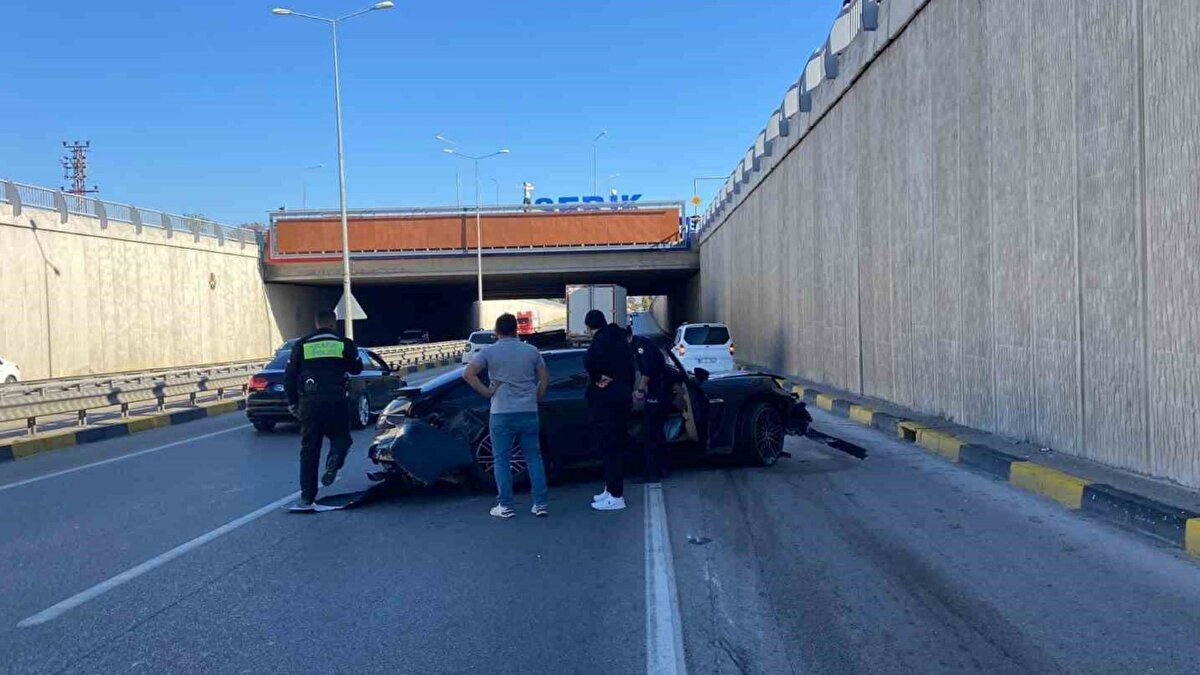Edinilen bilgilere göre, Davut E. idaresindeki 07 DE 907 plakalı Porsche marka otomobil, aynı yönde ilerleyen başka bir otomobile çarptı. Çarpışmanın etkisiyle savrulan araç, alt geçidin beton duvarına çarparak durabildi. Kazada lüks otomobilde büyük hasar oluştu.
