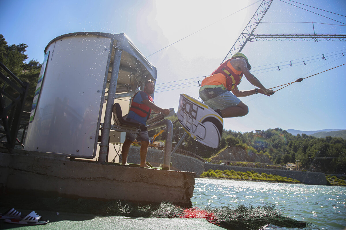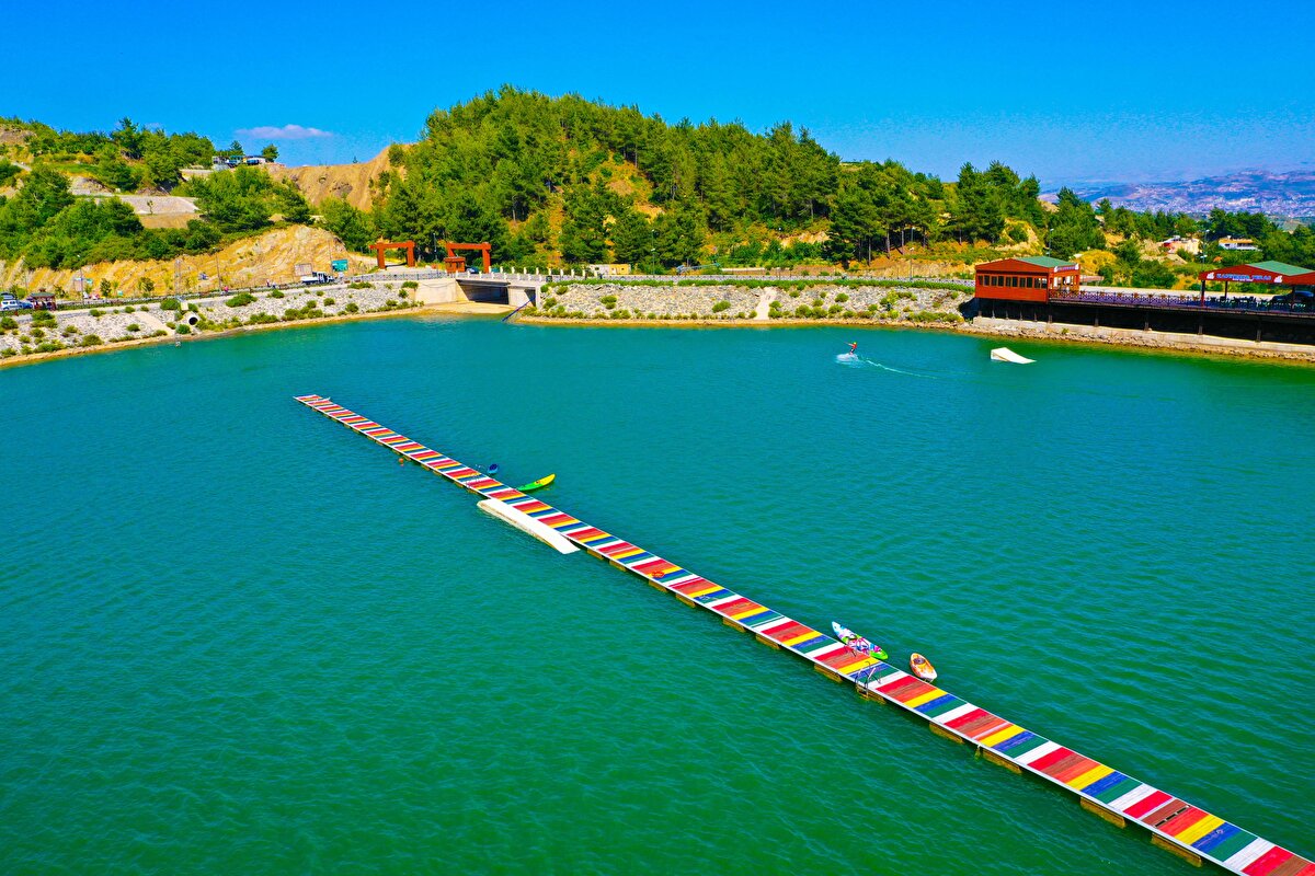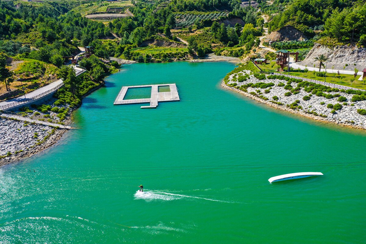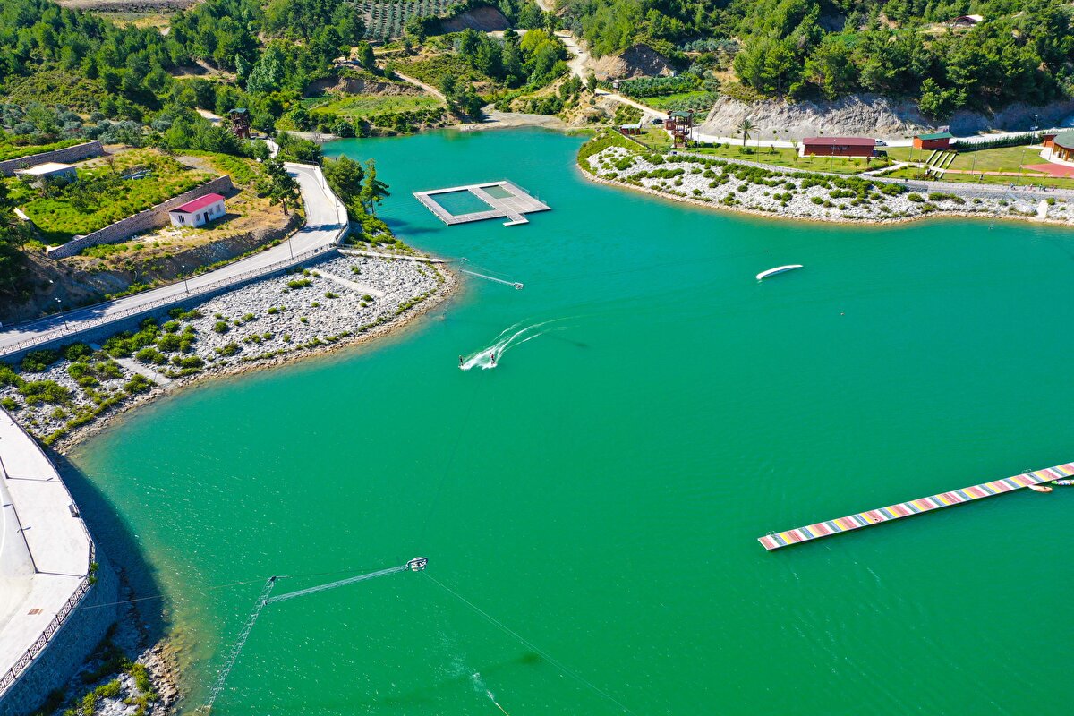 Güvenlik güçlerince yürütülen başarılı operasyonlarla terörden arındırılan Amanos Dağları eteğindeki Karlısu Göleti, su sporlarına ev sahipliği yapmaya hazırlanıyor. Yemyeşil doğası ve manzarasıyla görenleri hayran bırakan bölgede, gölete su sporları için rampalar kuruluyor, direkler ve diğer gerekli malzemeler yerleştiriliyor.