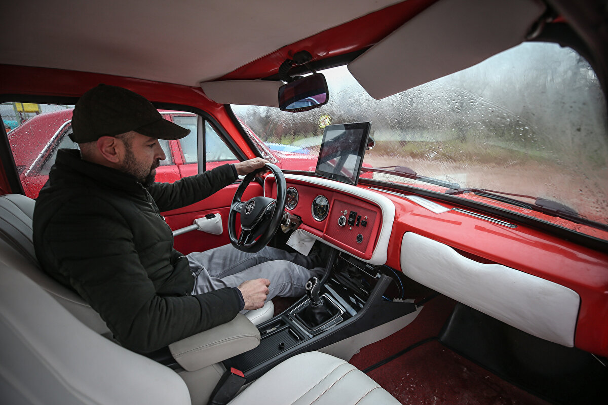 'Yanına bir tane daha alalım' dedik, yeşil olsun, beyaz olsun, tek kapı olsun, hadi bir kamyonet bir de steyşın derken seri böyle uzadı gitti. Toplamda 13 araçlık bir garajımız mevcut. Yarım asırlık otomobillere güncel dokunuşlar yapıyoruz. Gerek mekanik bakımları olsun gerekse üzerine yüklediğimiz teknolojik parçalar ve farklılıklar olsun, bu araçları adeta güncel araçlarla yarıştırıyoruz. Bunlar halen trafikte ilerleyebilecek düzeyde. Zaten araçlarımız muayenelerin hepsinden eksiksiz bir şekilde geçiyor ve bu araçları trafikte aktif olarak kullanabiliyoruz."