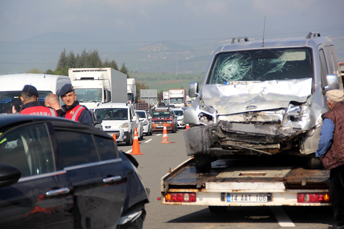Kaza, saat 09.00 sıralarında Anadolu Otoyolu'nun Çaydurt mevkiinde meydana geldi. Ankara istikametine giden 1 hafif ticari araç ve 4 otomobil çarpıştı.