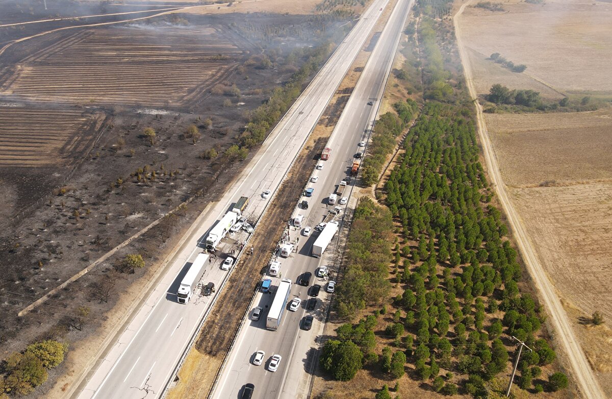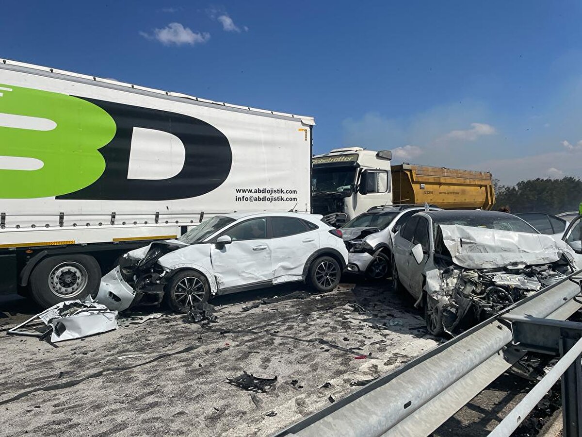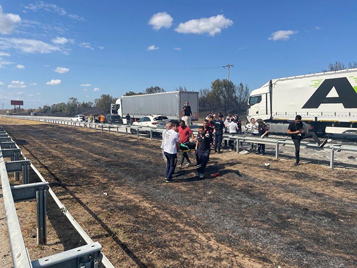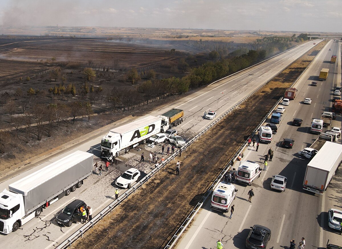 Tarlada yakılan anız ateşinden çıkan duman görüş mesafesini düşürünce, saat 14.30 sıralarında TEM Otoyolu'nun Edirne'nin Köseömer mevkisinde kaza meydana geldi.