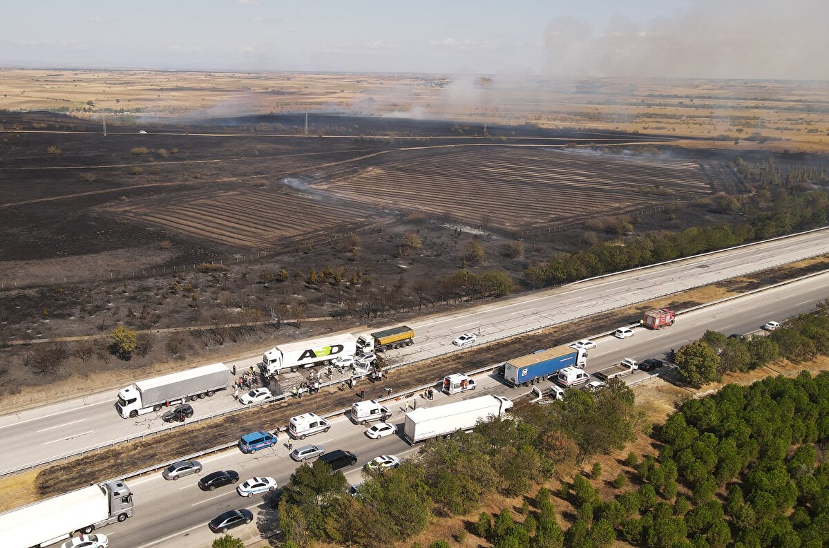 Edirne'de tarlada yakılan anız ateşinden çıkan dumanın kapladığı TEM Otoyolu'nda, 12 aracın karıştığı zincirleme kazada bir kişi hayatını kaybetti, 36 kişi yaralandı.