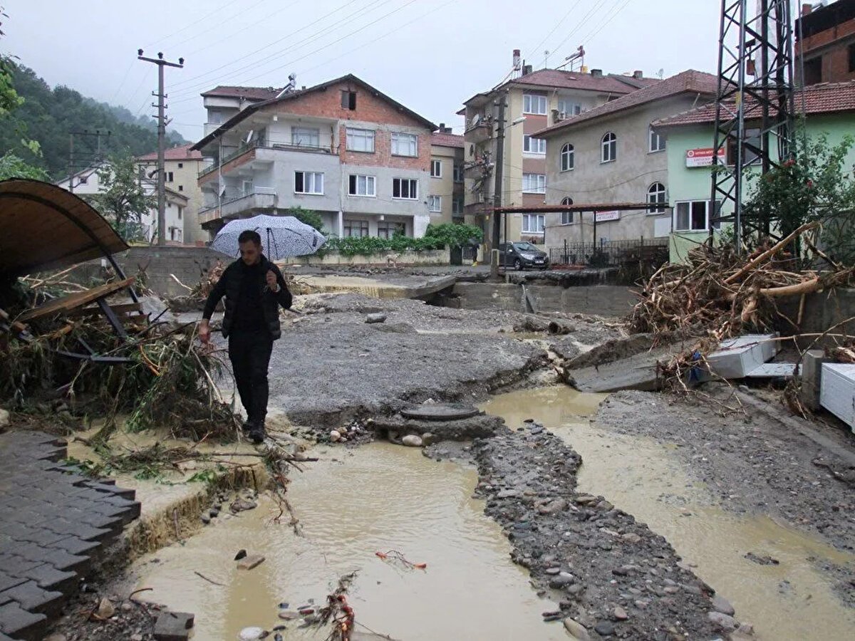 Karabük'te de sağanağın ardından çökme oluşan Karabük-Zonguldak kara yolu, çift yönlü ulaşıma kapatıldı.