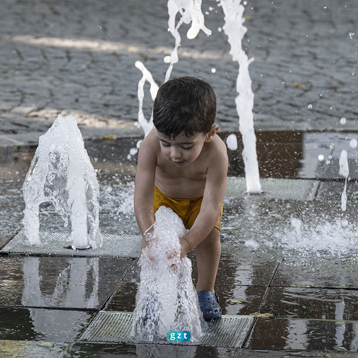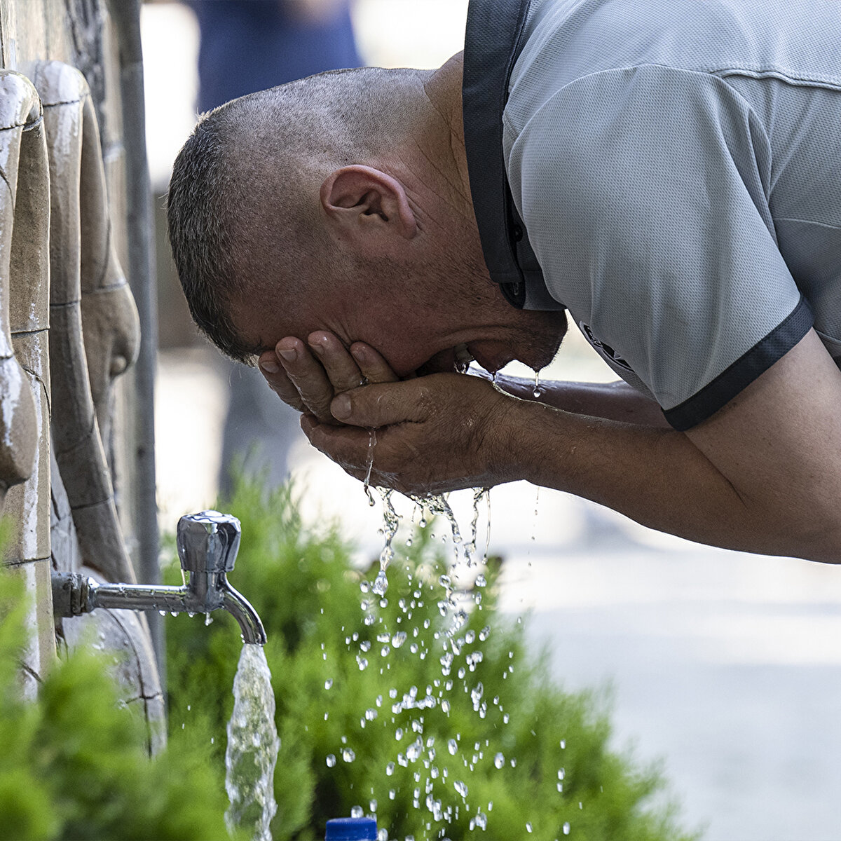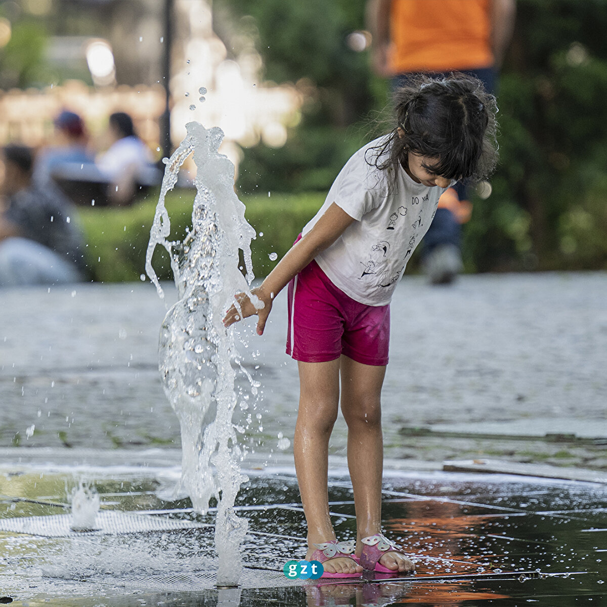 Başkent Ankara'da gün içerisinde sıcak hava dalgası etkili oldu. Kuğulu Park'a gelen çocuklar, fıskiyelerde serinlemeye çalıştı.