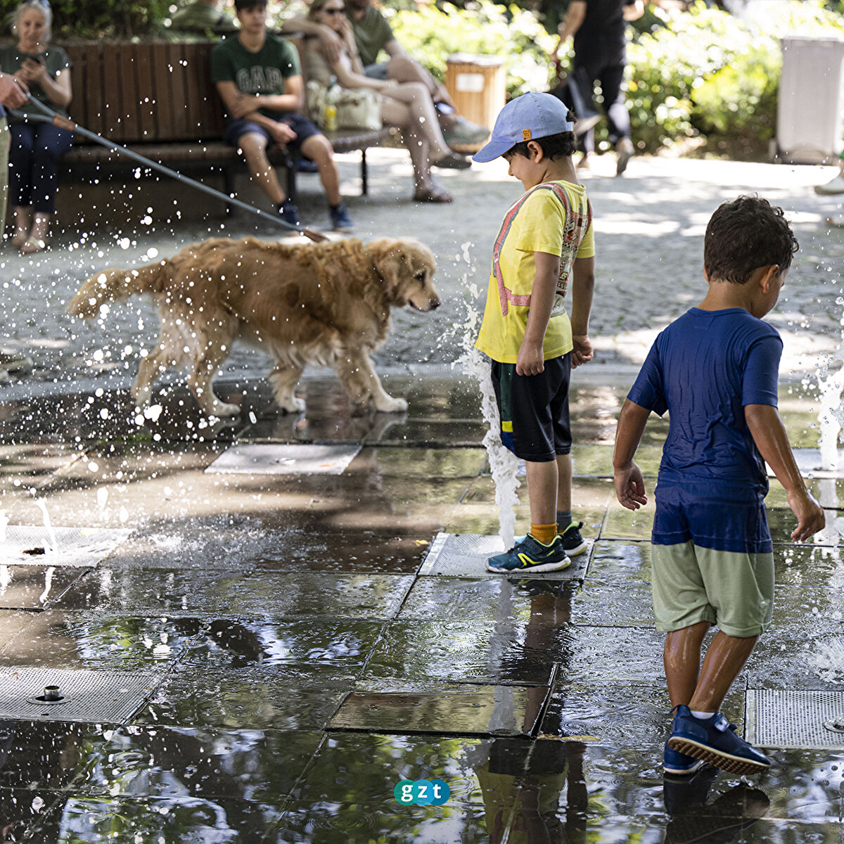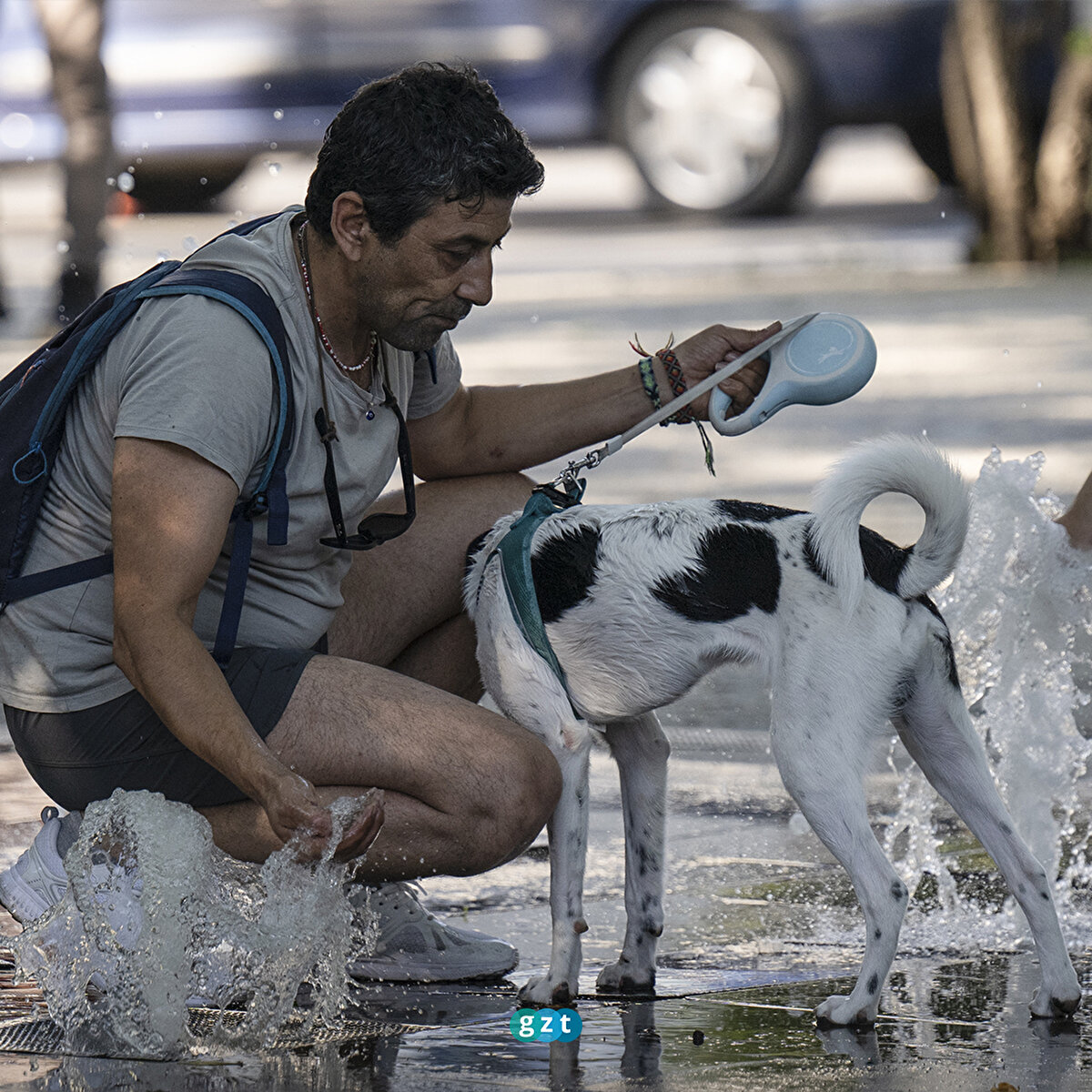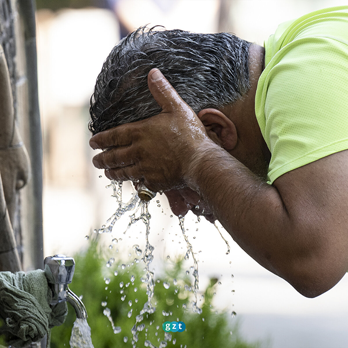 Başkent Ankara'da gün içerisinde sıcak hava dalgası etkili oldu. Kuğulu Park'a gelen çocuklar, fıskiyelerde serinlemeye çalıştı.