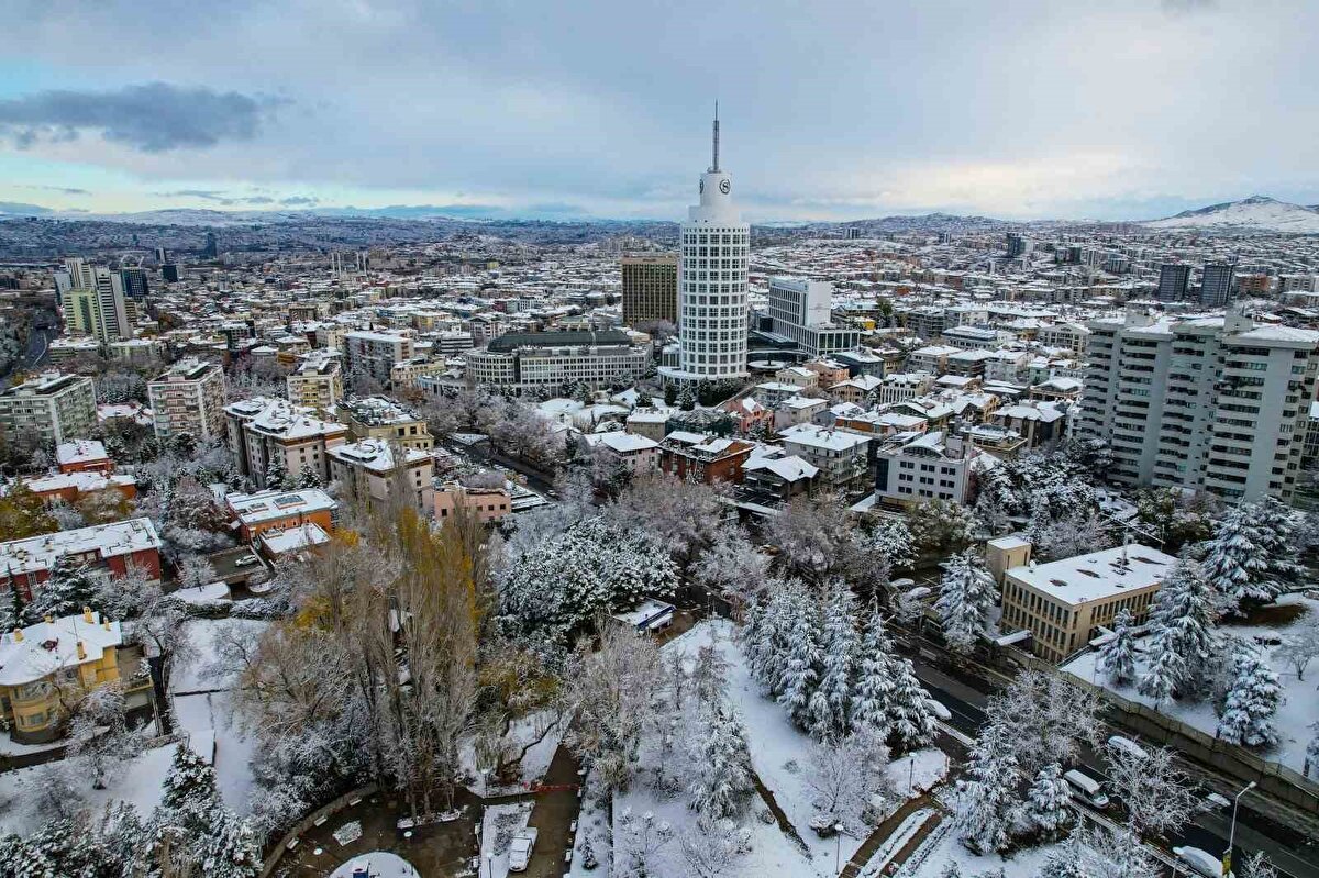 Gece boyunca etkisini sürdüren kar yağışıyla birlikte cadde ve sokaklar havadan görüntülendi. Kent genelinde etkili olan kar yağışı sonrası ortaya çıkan beyaz örtü, özellikle yüksek kesimlerde daha belirgin hale geldi. Havadan çekilen görüntülerde, parklar, yollar ve binaların karla kaplandığı manzaralar görenleri büyüledi. Ankara'nın beyaz örtüyle buluştuğu bu büyüleyici manzaralar, kış mevsiminin tüm güzelliklerini gözler önüne serdi.