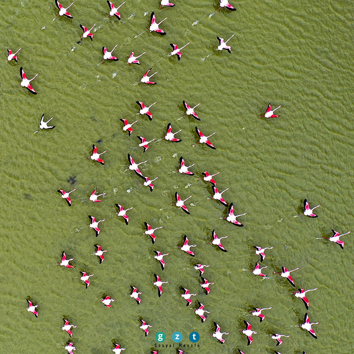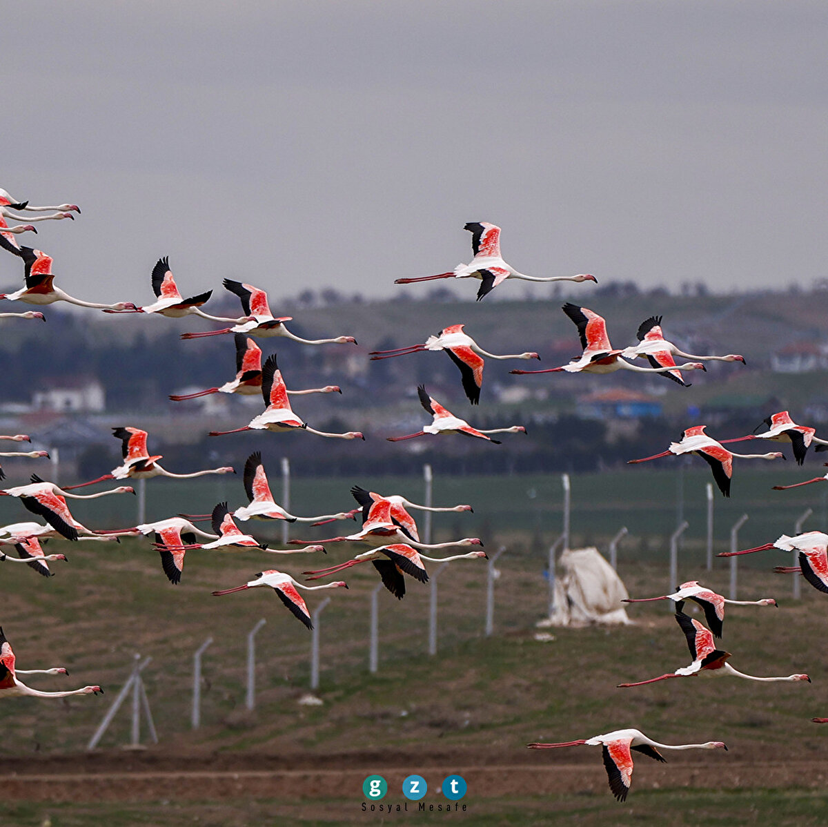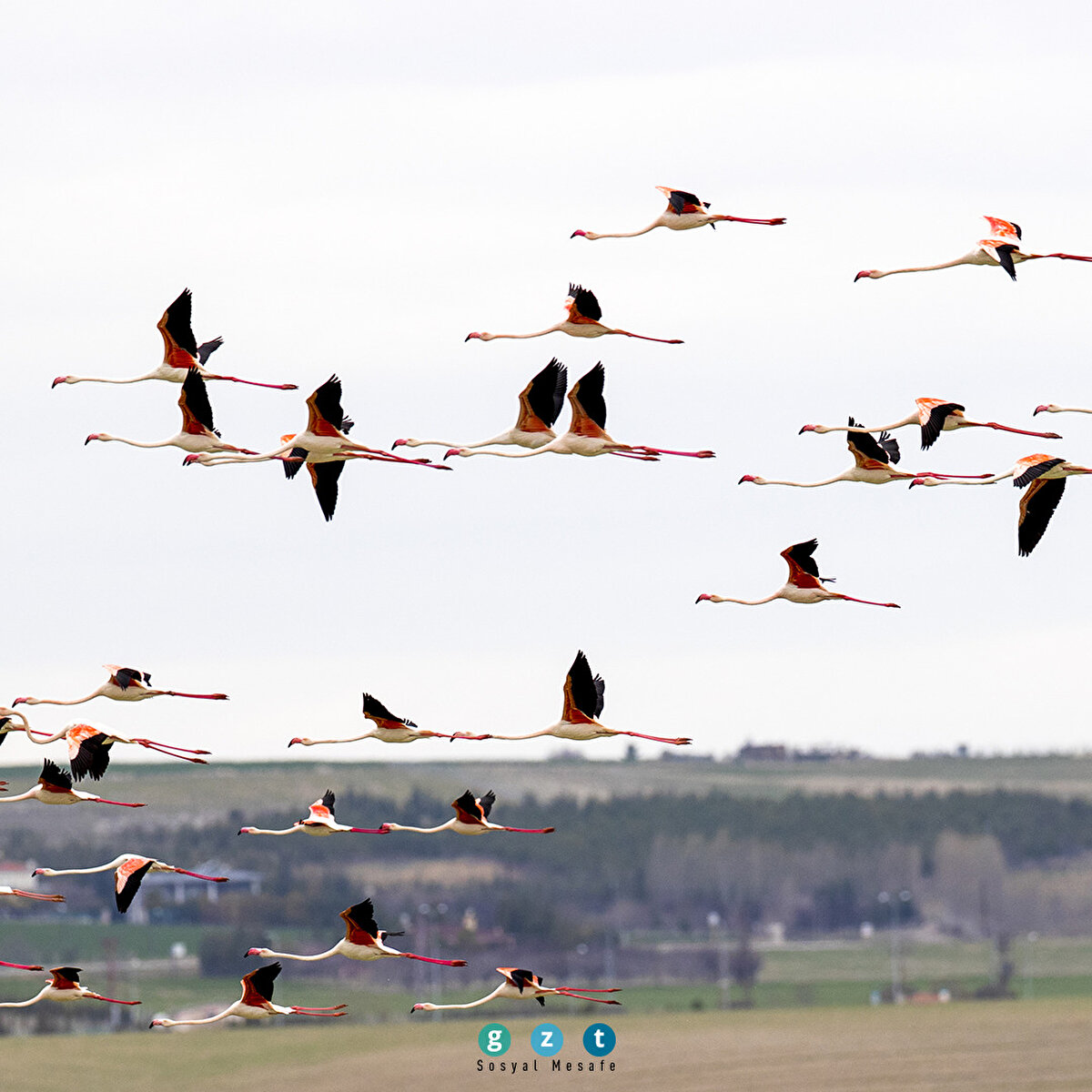 Akdeniz havzası ülkeleri arasında en fazla Ankara'yı yaşam alanı olarak kullanan flamingolar, göç mevsiminin gelmesiyle birlikte yeniden Başkent göletlerindeki yerlerini aldı. Ankara'nın Gölbaşı ve Şereflikoçhisar ilçelerinde bulunan göletleri göç durağı olarak kullanan flamingolar, Ankara semalarında renkli görüntüler oluşturuyor. Gölbaşı ilçesindeki göletleri mesken tutan renkli kuşlar, fotoğrafçılara görsel malzeme sunuyor. Renkleri ve zarafetleri ile görenleri etkileyen flamingolar, gökyüzünde gruplar halinde süzülerek görsel şölen sunuyor. #ankara #başkent #flamingo #doğa #göç #kuşlar #cumartesi