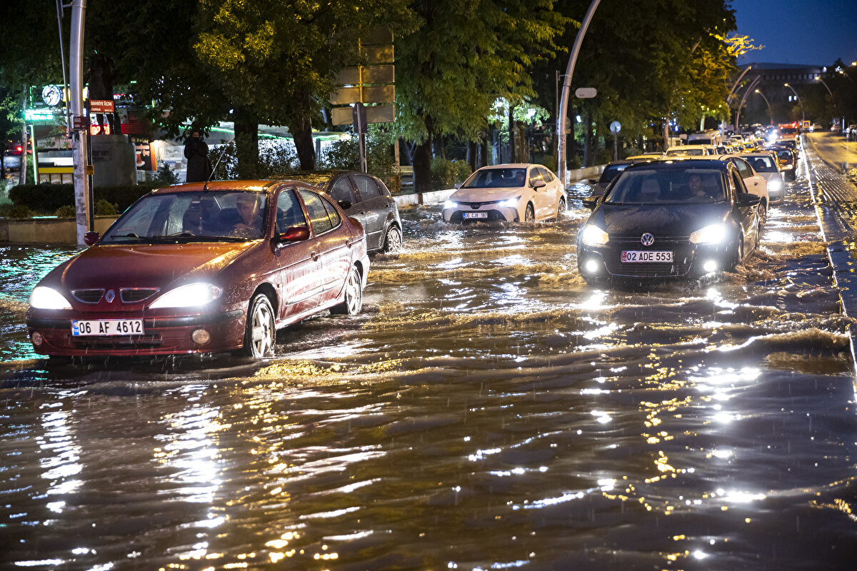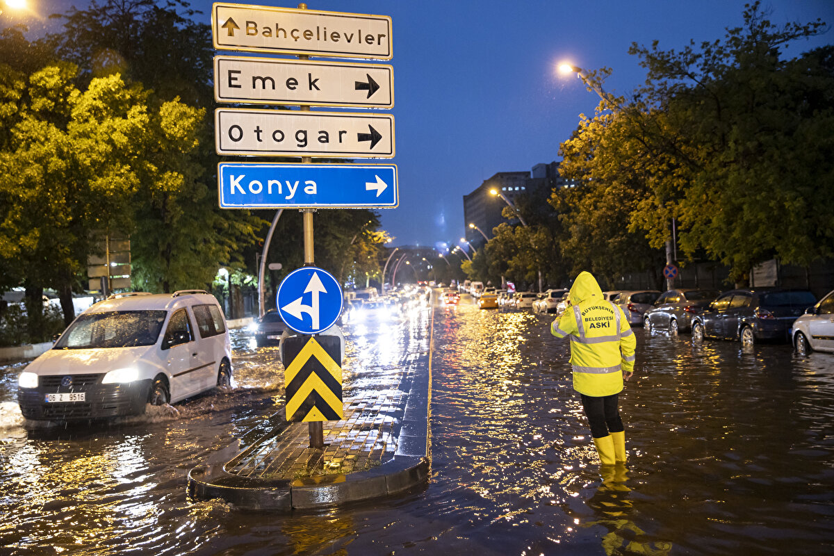 Ankara'da dün aniden bastıran dolu yağışı ve sağanak, vatandaşlara zor anlar yaşattı. Meteoroloji bugün de öğle saatlerinden itibaren kuvvetli gök gürültülü sağanak yağış beklendiğini duyururken; Keçiören Belediye Başkanı Turgut Altınok, " Böyle bir manzara yok. Sanki deniz, sanki nehir, sanki ırmak" dedi.