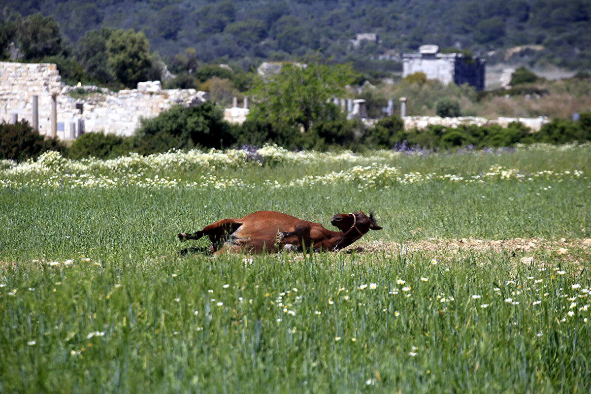 İlkbahar renklerinin doğal ve tarihi dokusuna ayrı bir güzellik kattığı Patara'da, papatyaların gelinciklerle kucaklaştığı tarlalar baharın en güzel renklerini yansıtıyor.