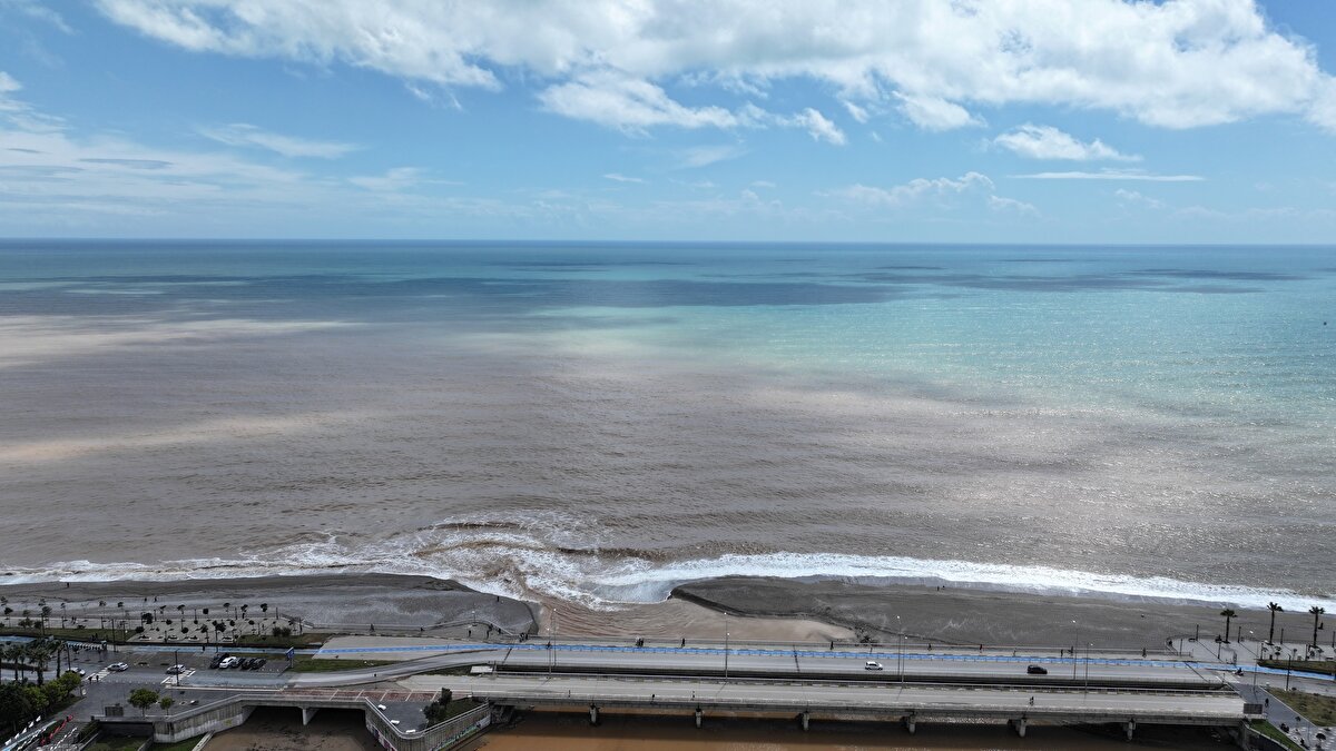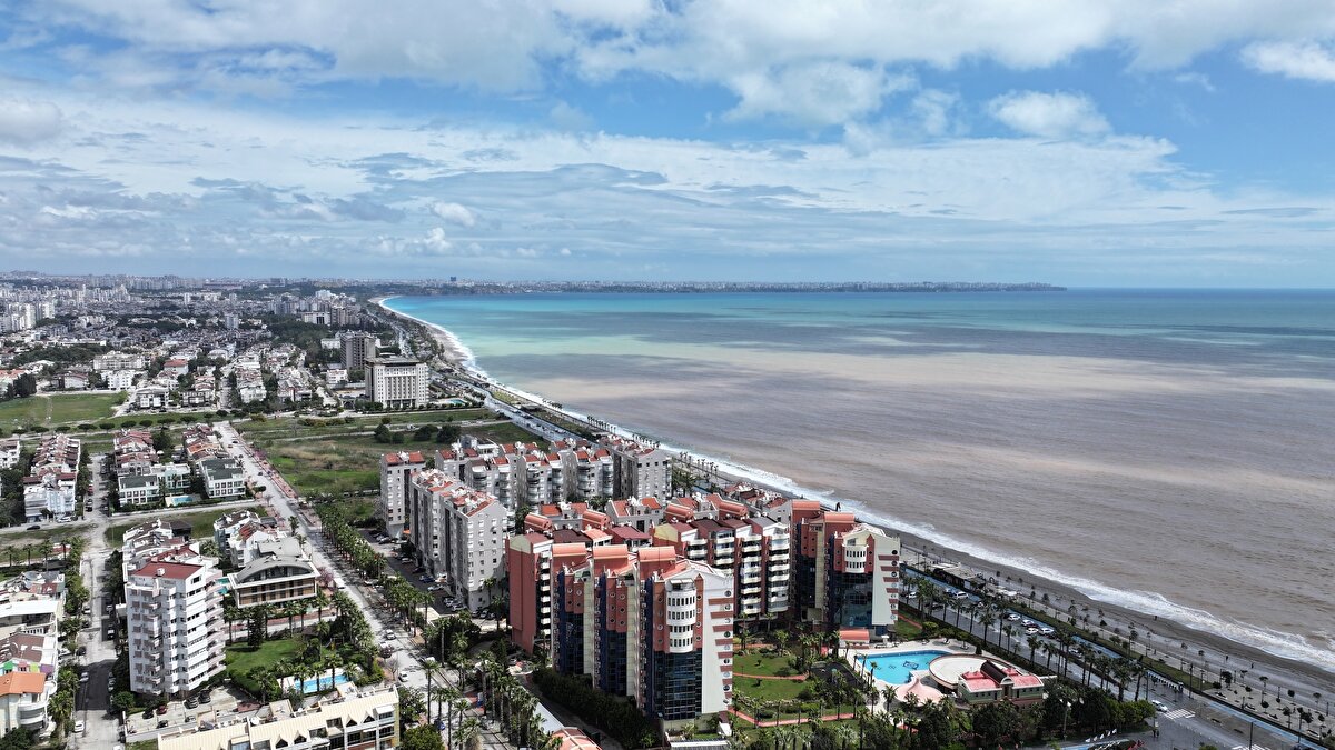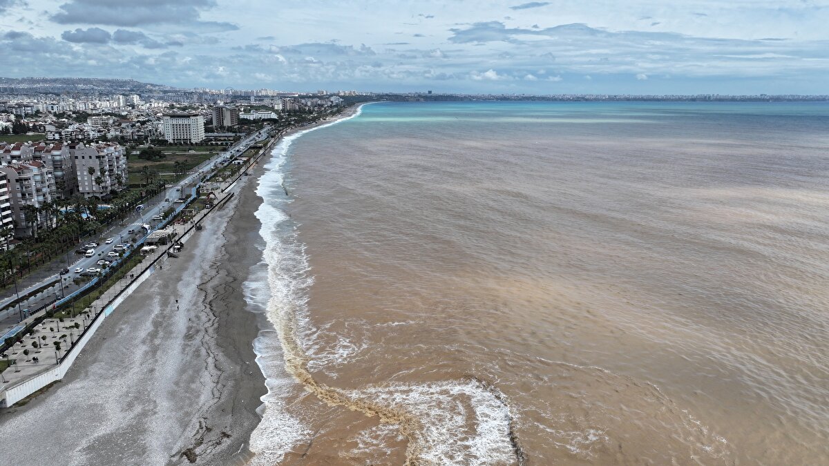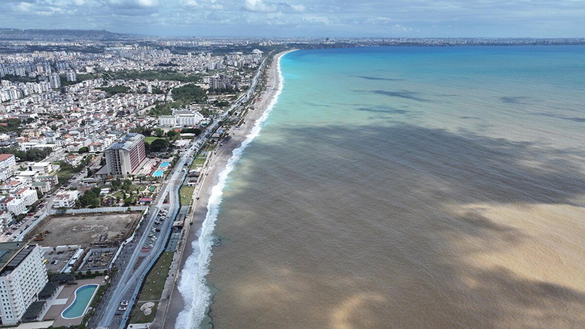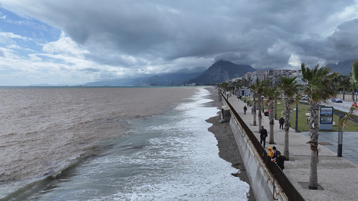 Antalya'da gece etkili olan sağanak sonrası Konyaaltı Sahili'nde denizin rengi değişti. Denizin plaja yakın bölümleri kahverengiye dönüşürken, diğer taraflarında mavi ve turkuaz renkler hakim oldu.