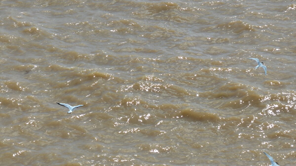 Martılar da sürüler halinde suya inerek dalgalar arasında yiyecek bulmaya çalıştı.