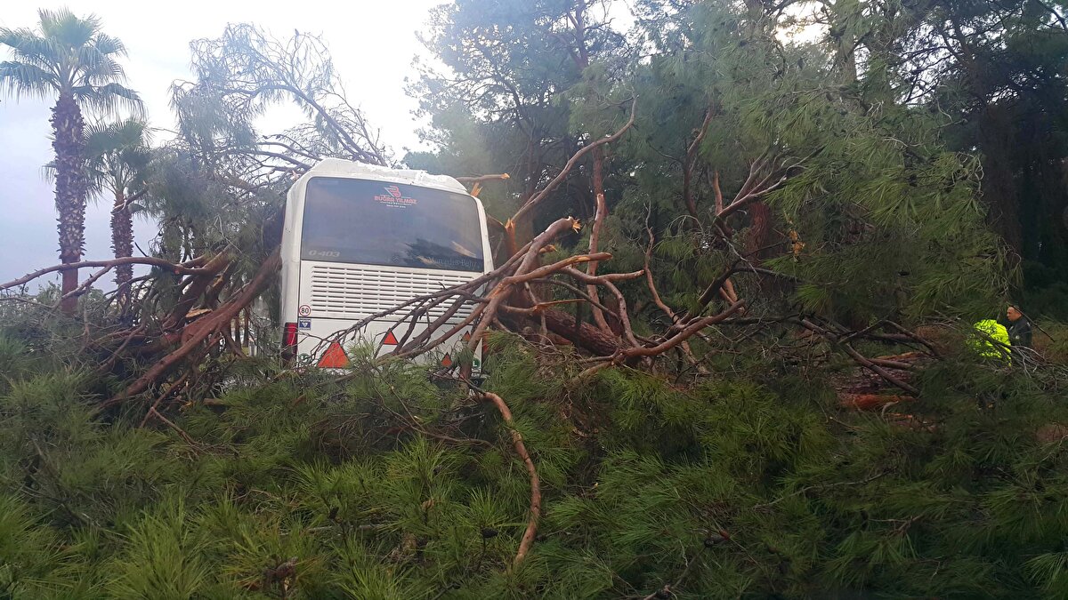Antalya'da otel servisinin üzerine ağaç devrildi: 7 yaralı