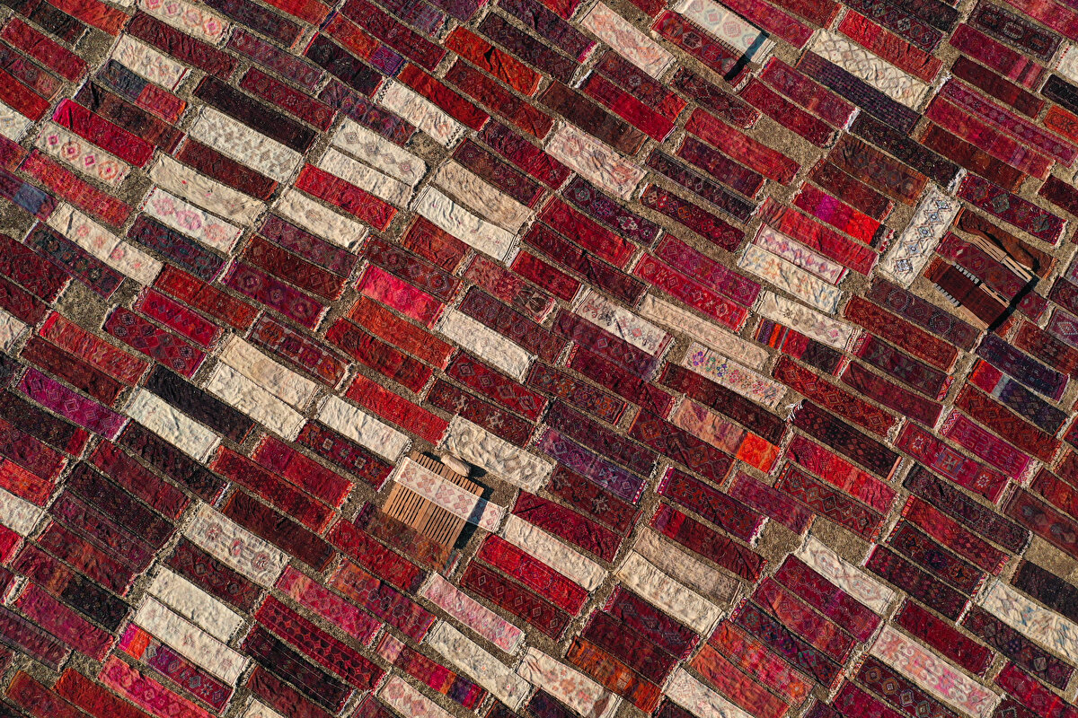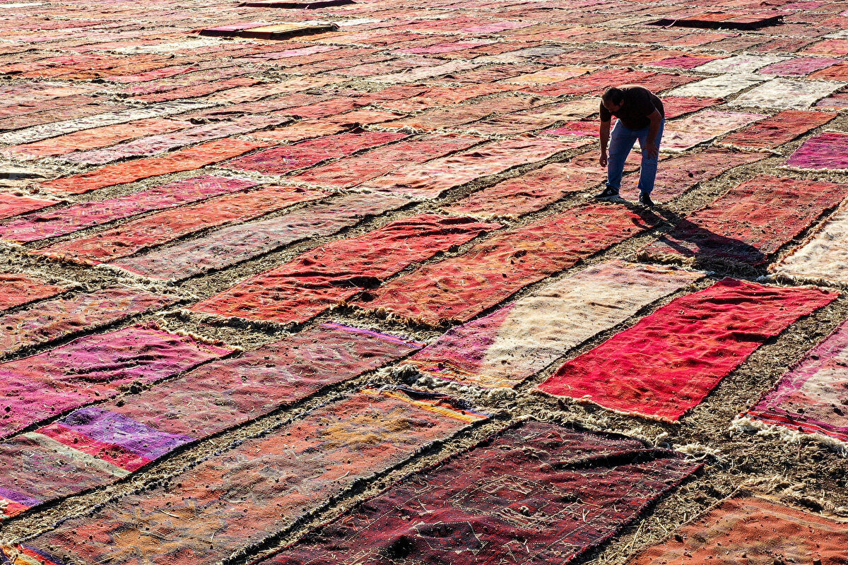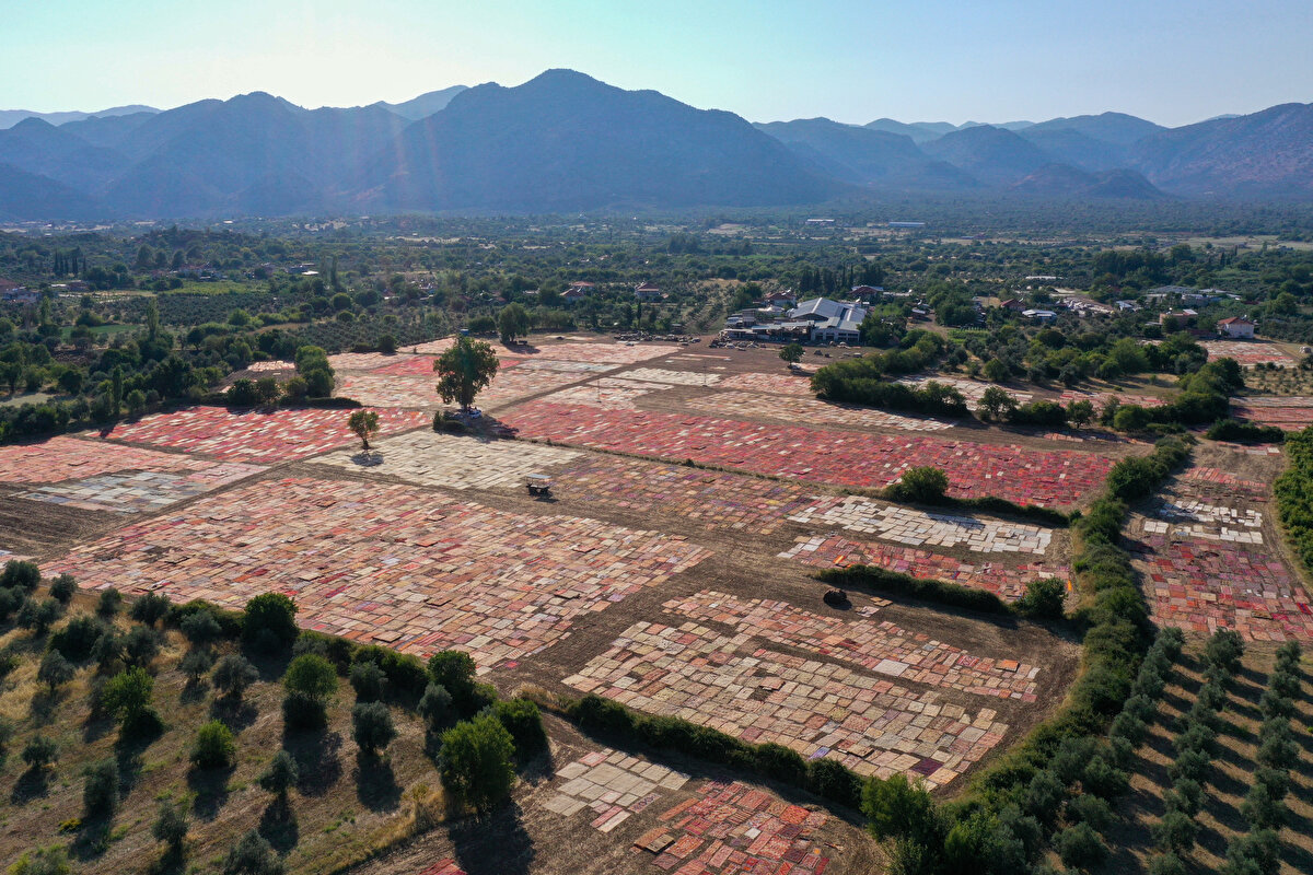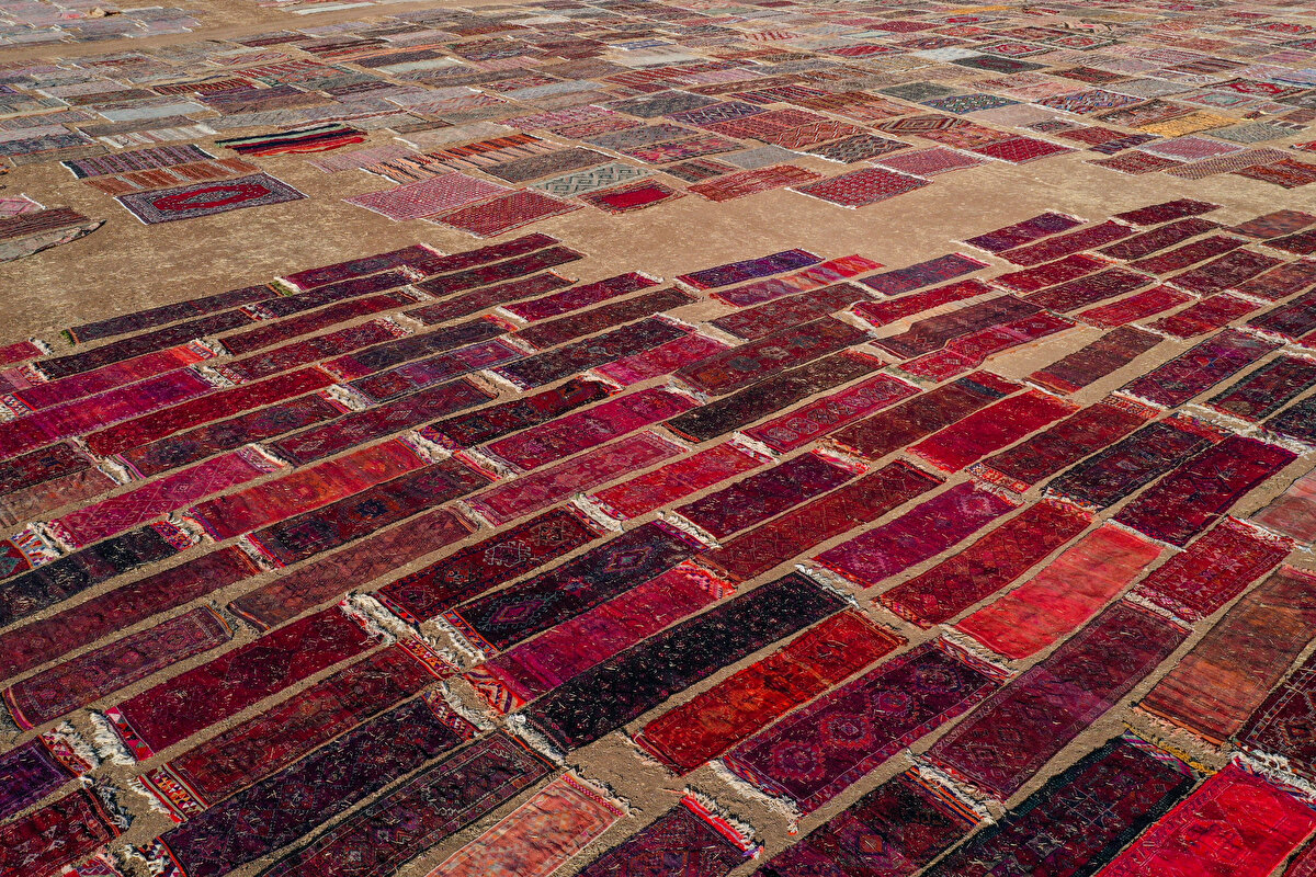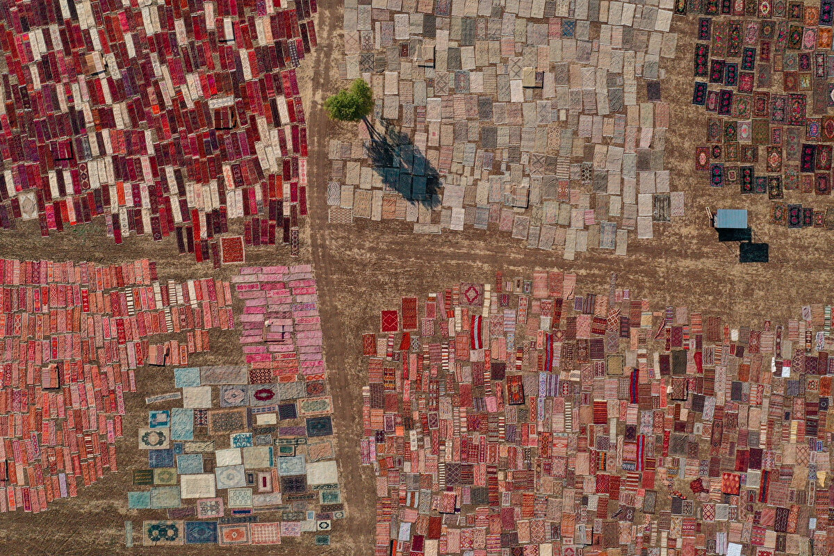 Yağışlı havalarda depolara kaldırılan el dokuması halı ve kilimler, güneşin kendisini göstermesiyle yeniden tarlalardaki yerini alıyor. Zaman zaman rüzgar nedeniyle ters dönen, kıvrılan halılar hemen düzeltiliyor, belli aralıklarla da tozlarından arındırılıyor.