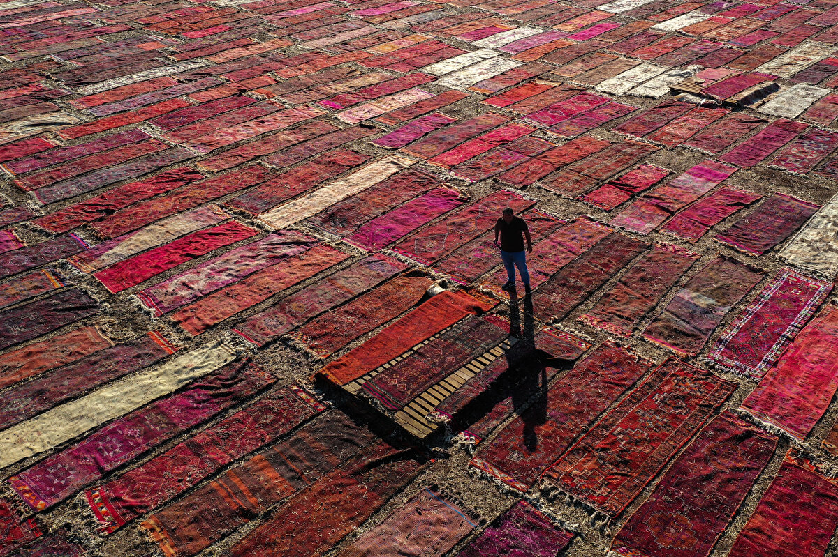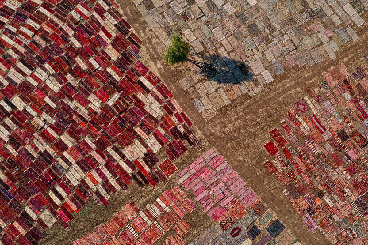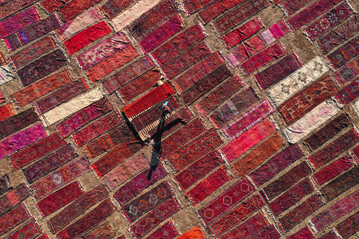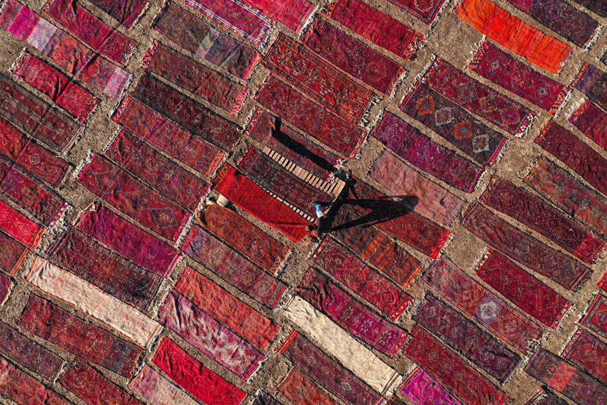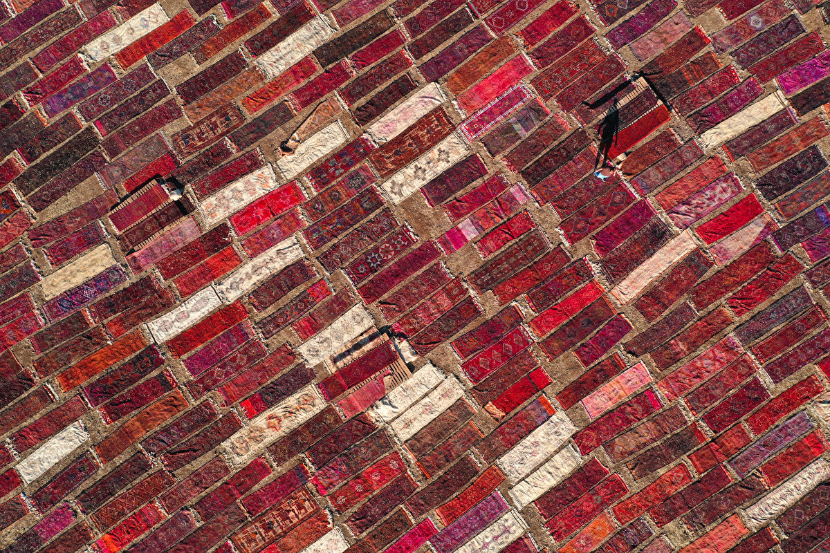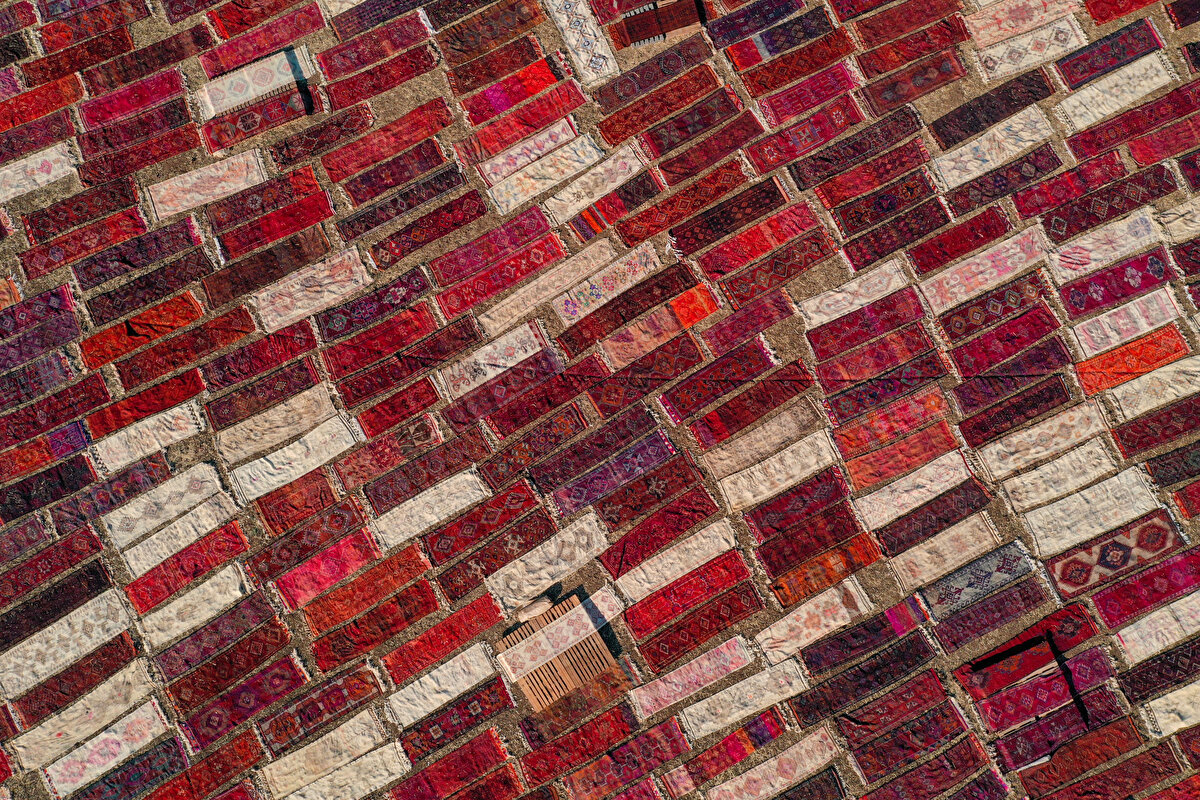 Yağışlı havalarda depolara kaldırılan el dokuması halı ve kilimler, güneşin kendisini göstermesiyle yeniden tarlalardaki yerini alıyor. Zaman zaman rüzgar nedeniyle ters dönen, kıvrılan halılar hemen düzeltiliyor, belli aralıklarla da tozlarından arındırılıyor.