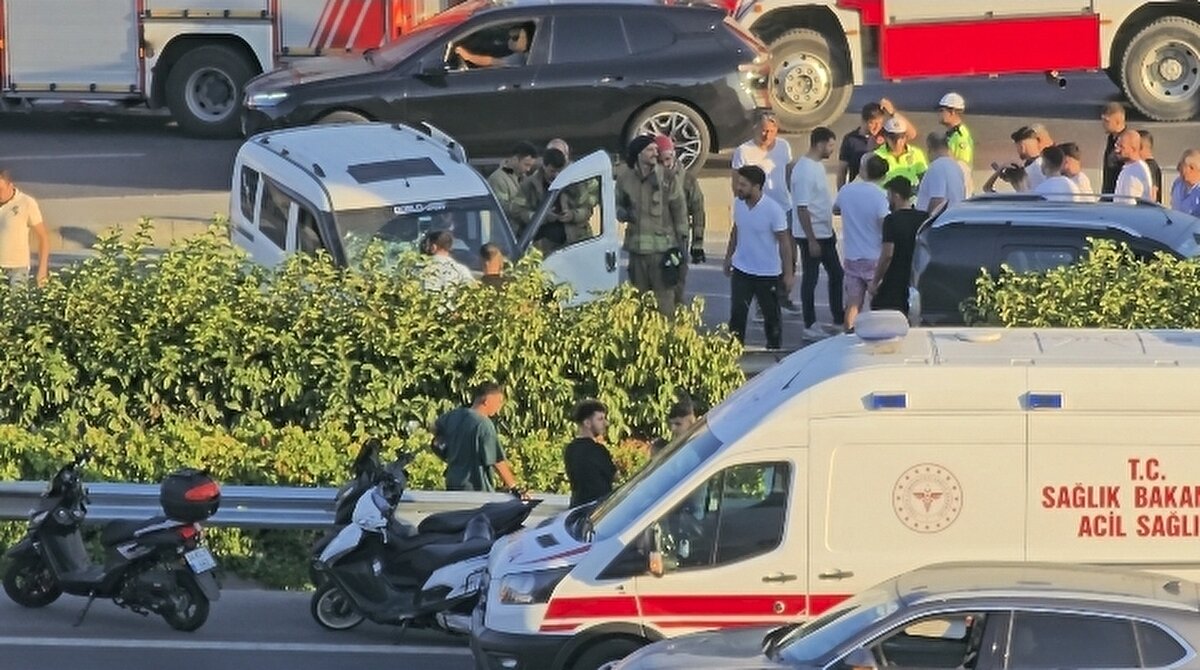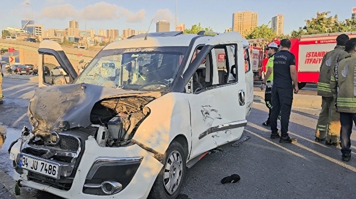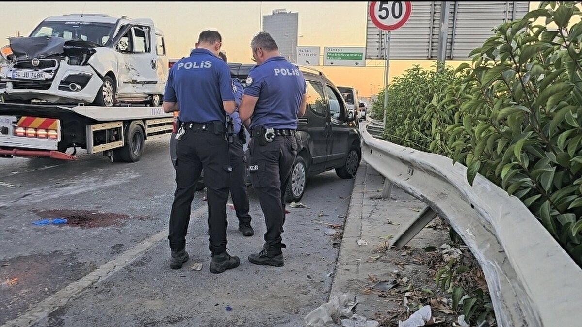 O sırada aynı istikamette seyreden 34 JU 7486 plakalı hafif ticari araç, önce bariyerlere ardından da yayalara çarptı.