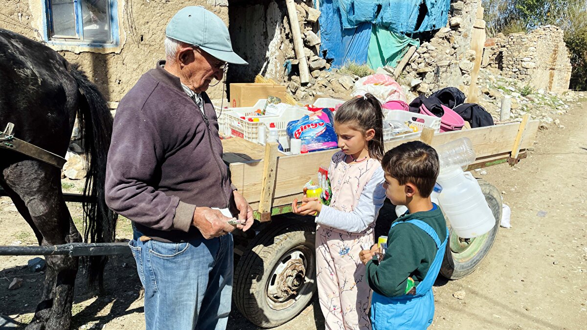Sabahın ilk ışıklarıyla deposundaki ürünleri at arabasına yükleyen ve son 15 yılını beraber aşındırdığı atıyla yollara koyulan Yıldırım, gittiği köylerde kadınların ve özellikle çocukların ilgisiyle karşılaşıyor.