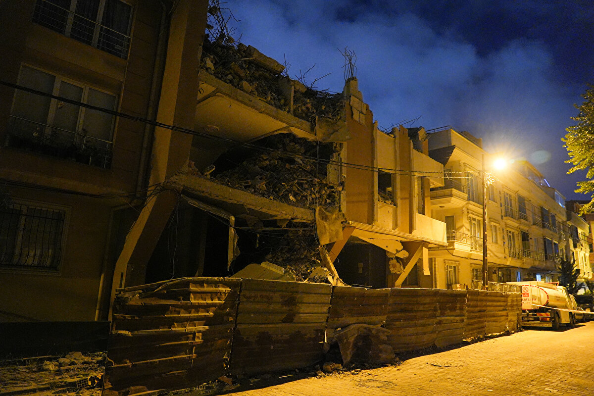Cihangir Mahallesi Düz Sokak'ta kentsel dönüşüm çalışmaları kapsamında yıkımına başlanan ve Kurban Bayramı nedeniyle çalışmalara ara verilen 6 katlı binada kısmi çökme meydana geldi.