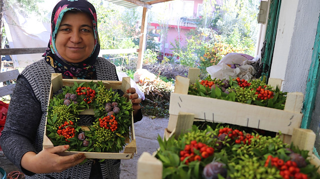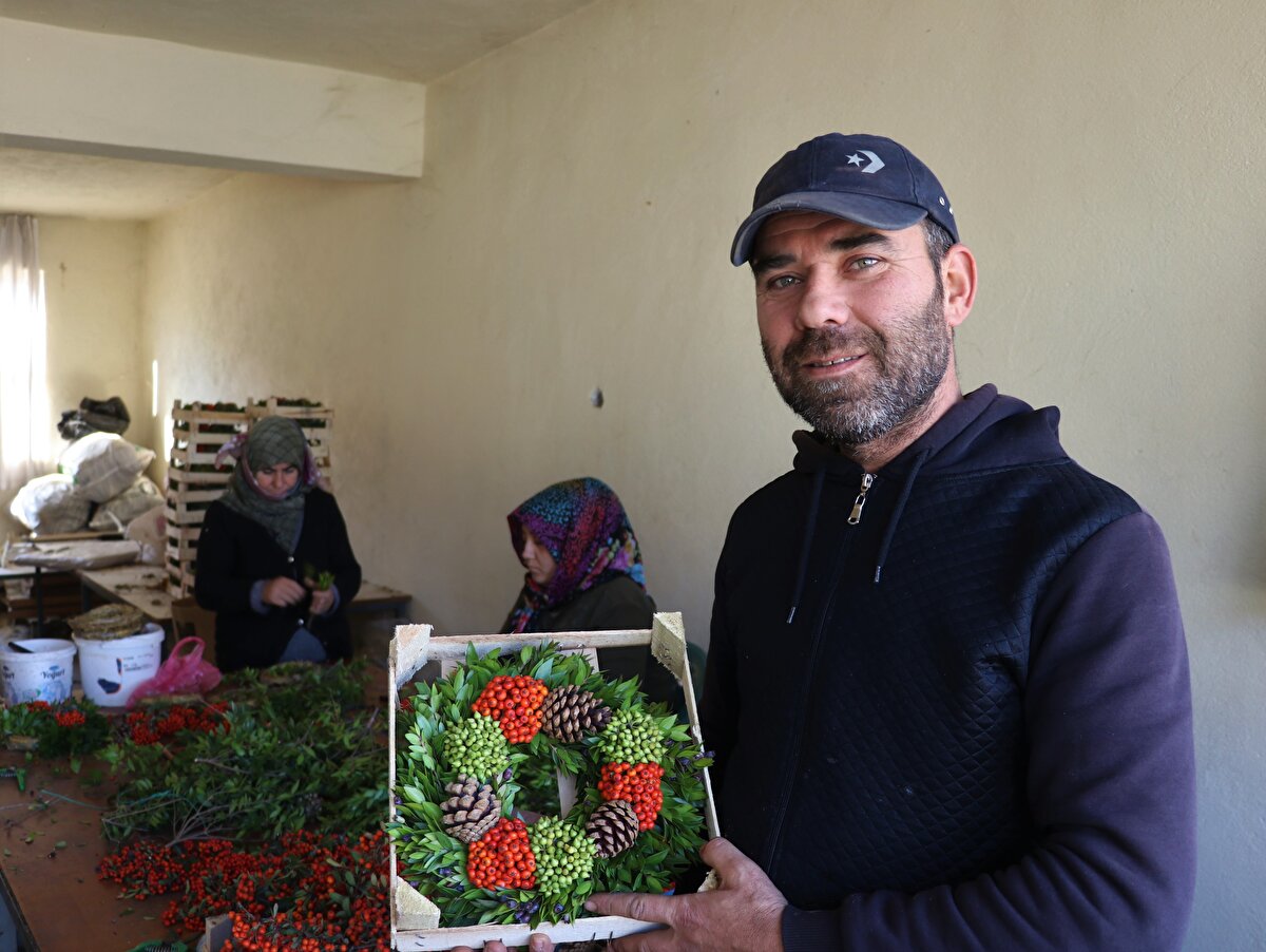 İşçilerden sorumlu Münevver Atik, 19 yıldır bu sektörde çalıştığını, beldede çelenk yapımının 2001'de başladığını dile getirdi. Bazı kadınların firmaların atölyelerinde çalıştığını belirten Atik, "Çemberlere dalları sarıyoruz, üzerine kozalak, okaliptus, kuşburnu, kızılcık, alıç, dağ çileği, kırmızı meyveler yerleştiriyoruz." ifadesini kullandı.