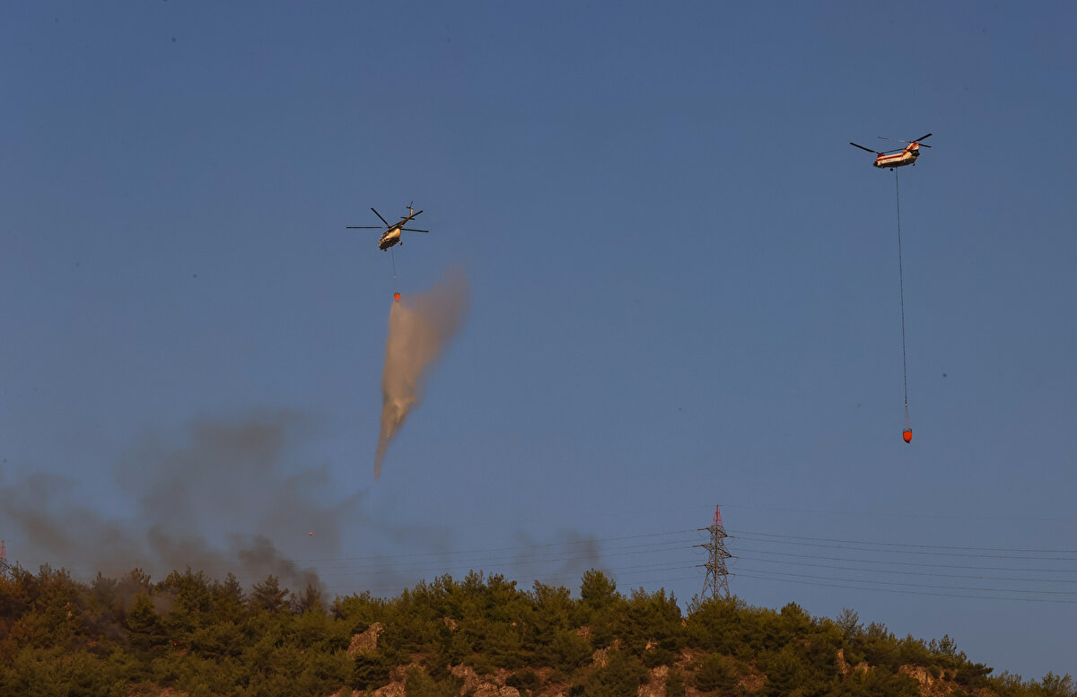 Gece havadan söndürme çalışmalarının devam etmesi için gece görüşlü helikopterler bölgeye yönlendirildi.