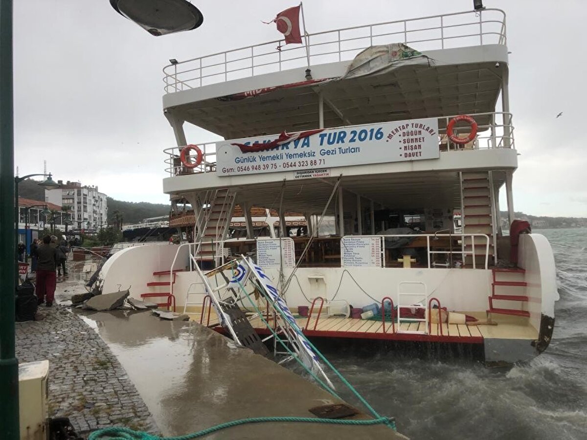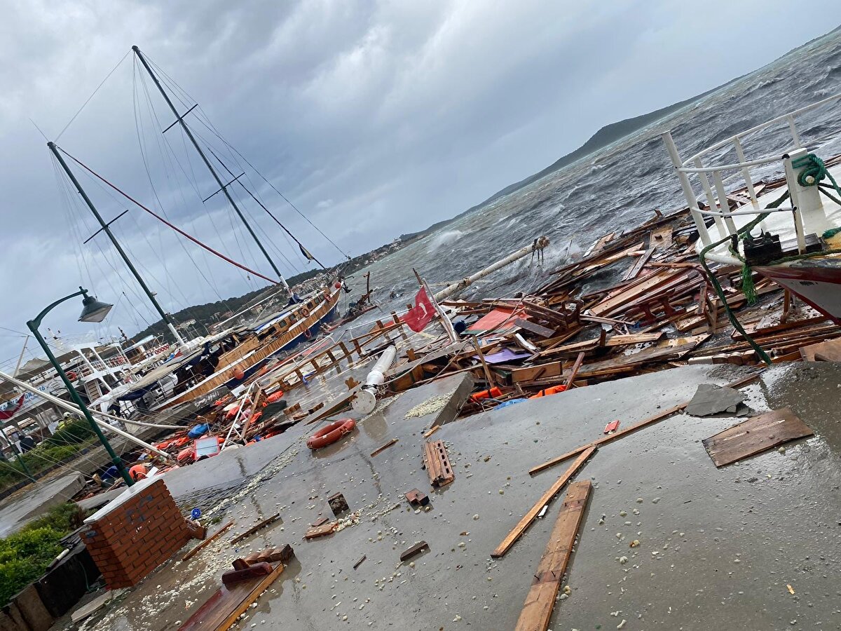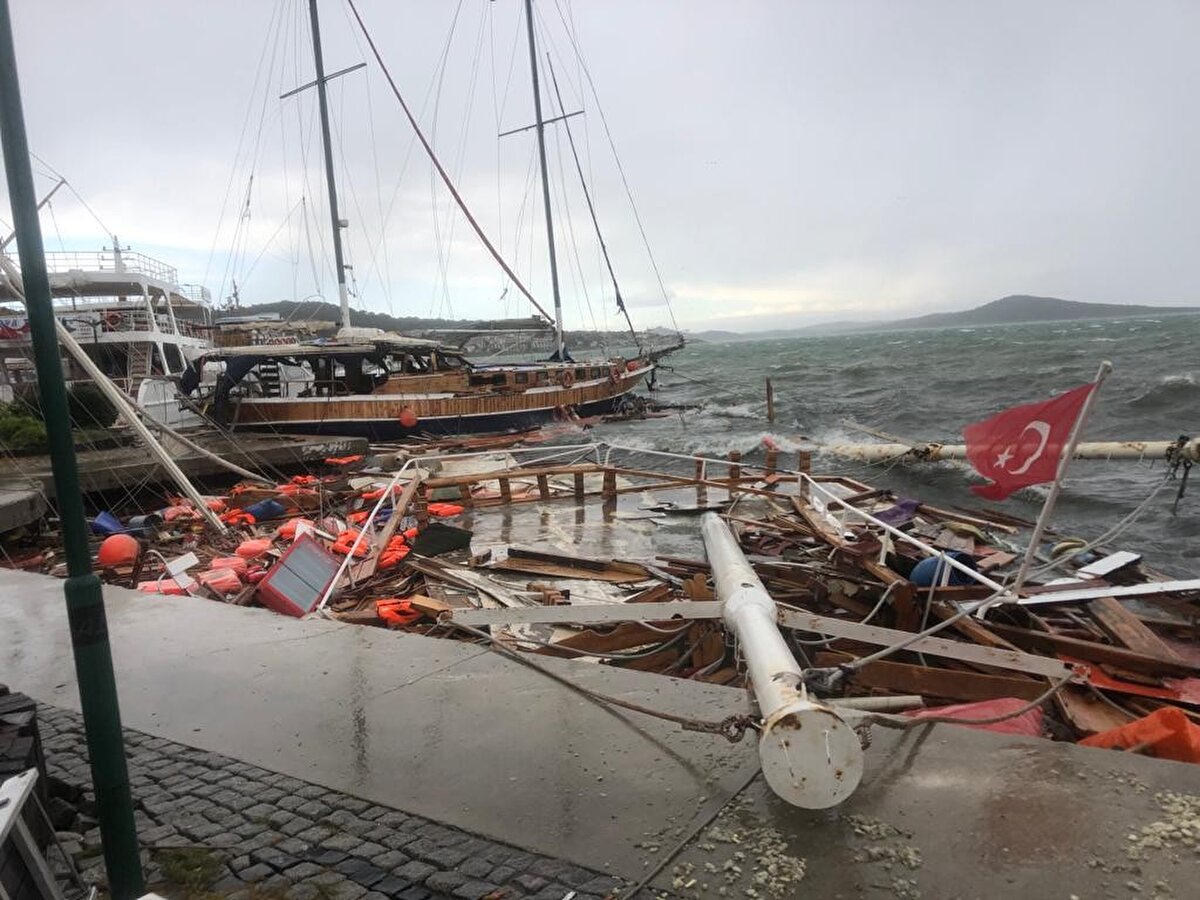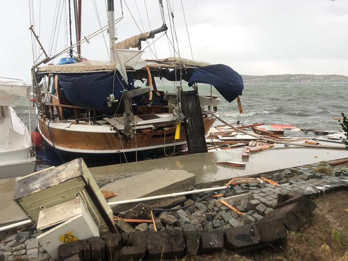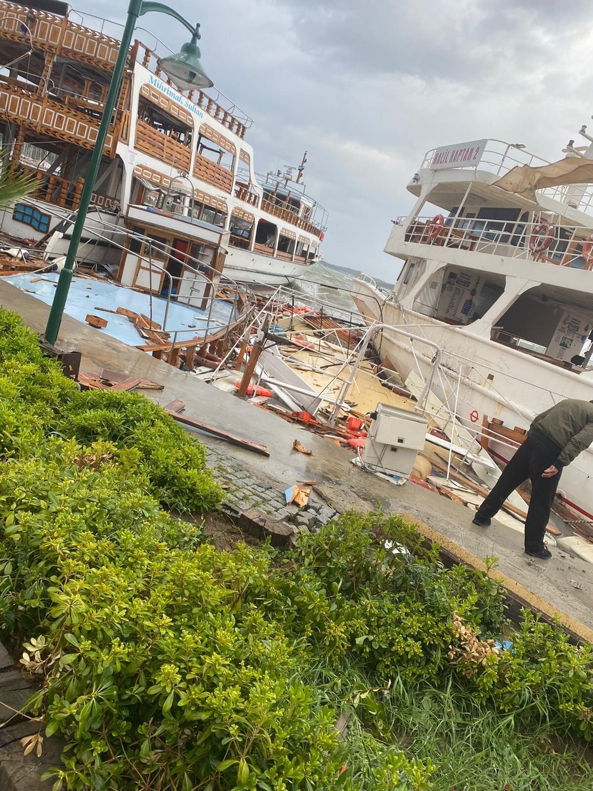 Balıkesir'in Ayvalık ilçesinde sabah saatlerinde etkili olan şiddetli sağanak ve fırtına nedeniyle 20 tekne battı. İzmir Dikili'de de etkili olan fırtınada tekneler zarar gördü, ağaçlar devrildi.