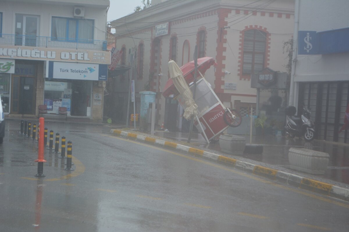 Ayvalık ilçesinde saat 07.00 sıralarında sağanak yağış ile birlikte hızı saatte 80 kilometreye ulaşan fırtına etkili oldu.