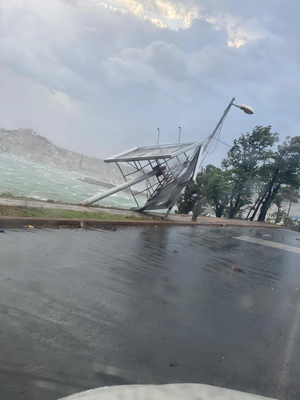 Gönül Yolu Köprüsü yakınlarında bulunan bir zeytin ağacı ve birkaç sokak lambası direğinin de devrildiği bildirildi.