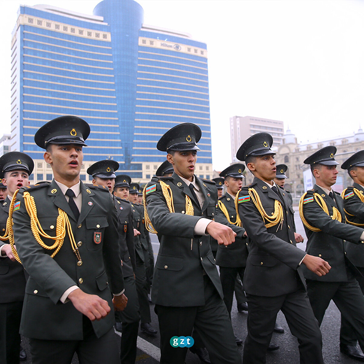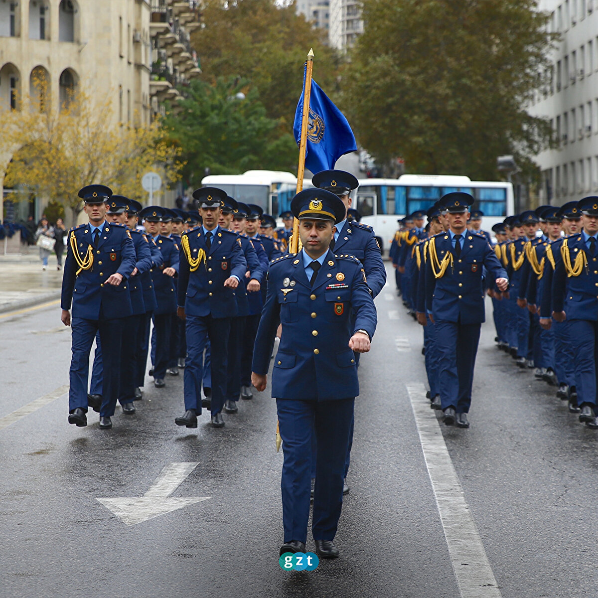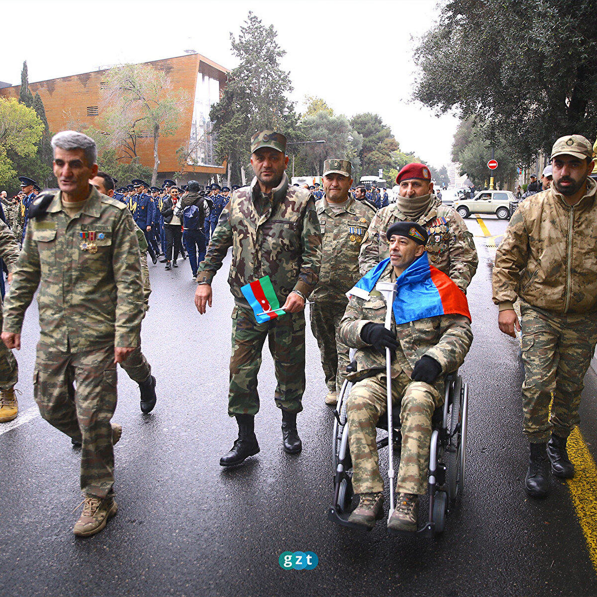 "Zafer Günü" kutlamaları kapsamında Bakü'nün çeşitli bölgelerinde düzenlenen yürüyüşlere, askeri lise öğrencileri ve Karabağ Savaşı gazileri katıldı.