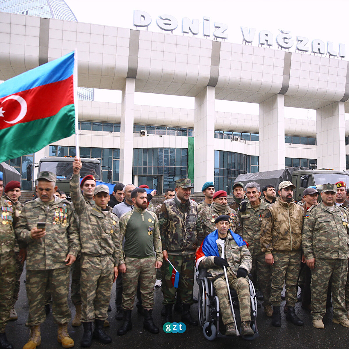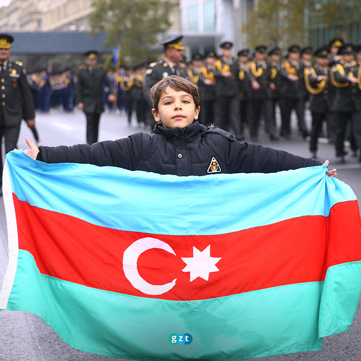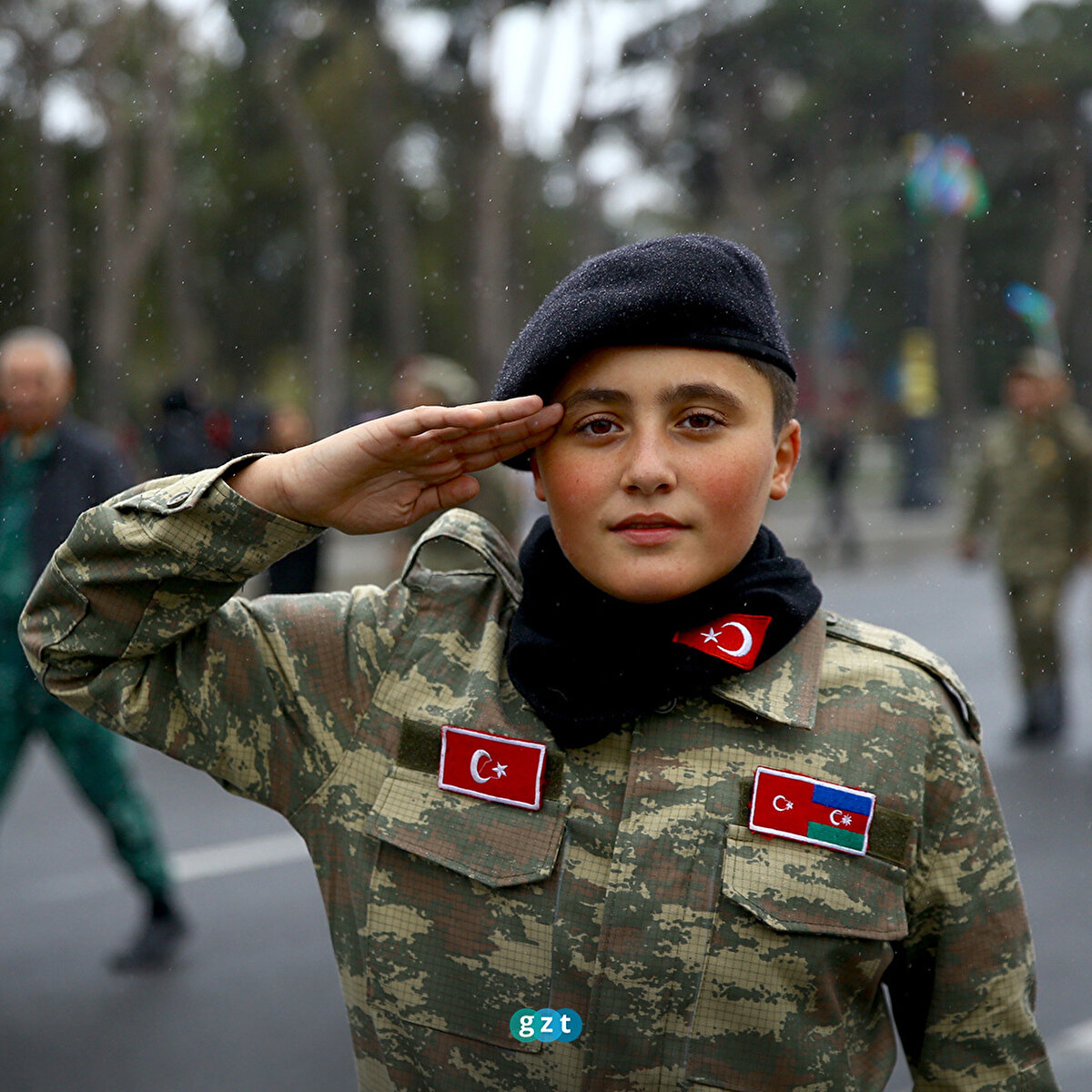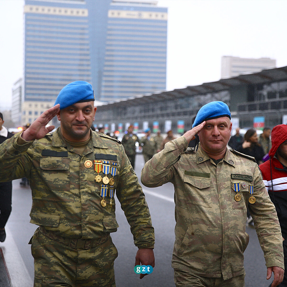 "Zafer Günü" kutlamaları kapsamında Bakü'nün çeşitli bölgelerinde düzenlenen yürüyüşlere, askeri lise öğrencileri ve Karabağ Savaşı gazileri katıldı.
