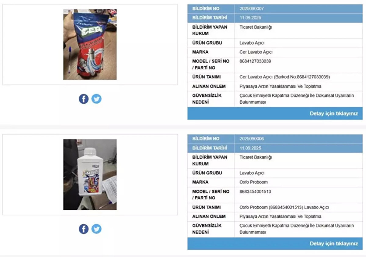 Yapılan incelemeler sonucu, iki marka lavabo açıcı ürünün kullanımının sağlıksız ve riskli olduğu belirlendi.