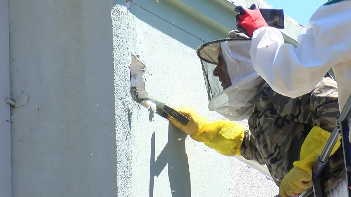 Okula gelen arıcılar, arıların en üst kattaki duvara oğul verdiğini belirledi. Bunun üzerine özel kıyafetlerini giyerek, kovanlara ulaşmak istedi.