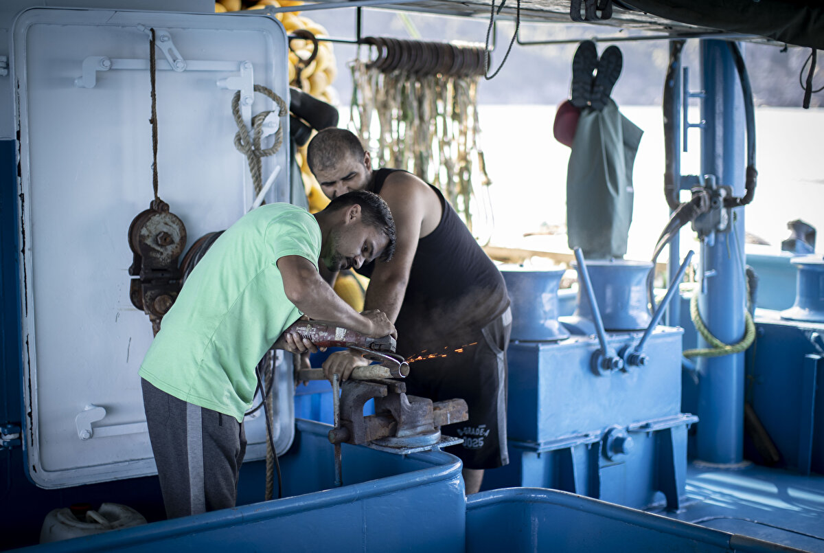 Aşçı, bir sonraki öğünün yemeğini hazırladı. Tayfanın bir kısmı ise balık ağlarını kontrol etti.