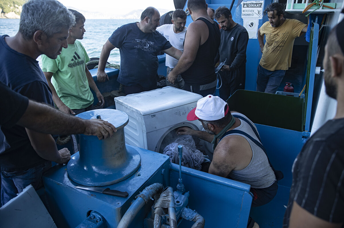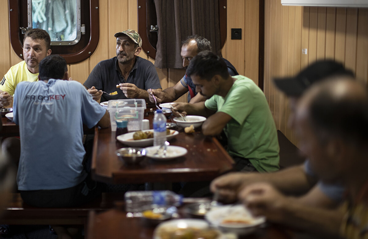 Hazırlıklarını tamamlayarak 1 Eylül'de Karadeniz'e açılan balıkçı tekneleri yaklaşık 8 ay boyunca av mesaisi yapacak. "Deniz Ana" ile Karadeniz'de 5 gün geçiren Anadolu Ajansı muhabiri, farklı yaş gruplarındaki, kaptanından aşçısına, kamarotundan (gemi ve tekne görevlisi) mantar istifçisine kadar balıkçı tayfasının zor şartlardaki mesaisini görüntüledi.