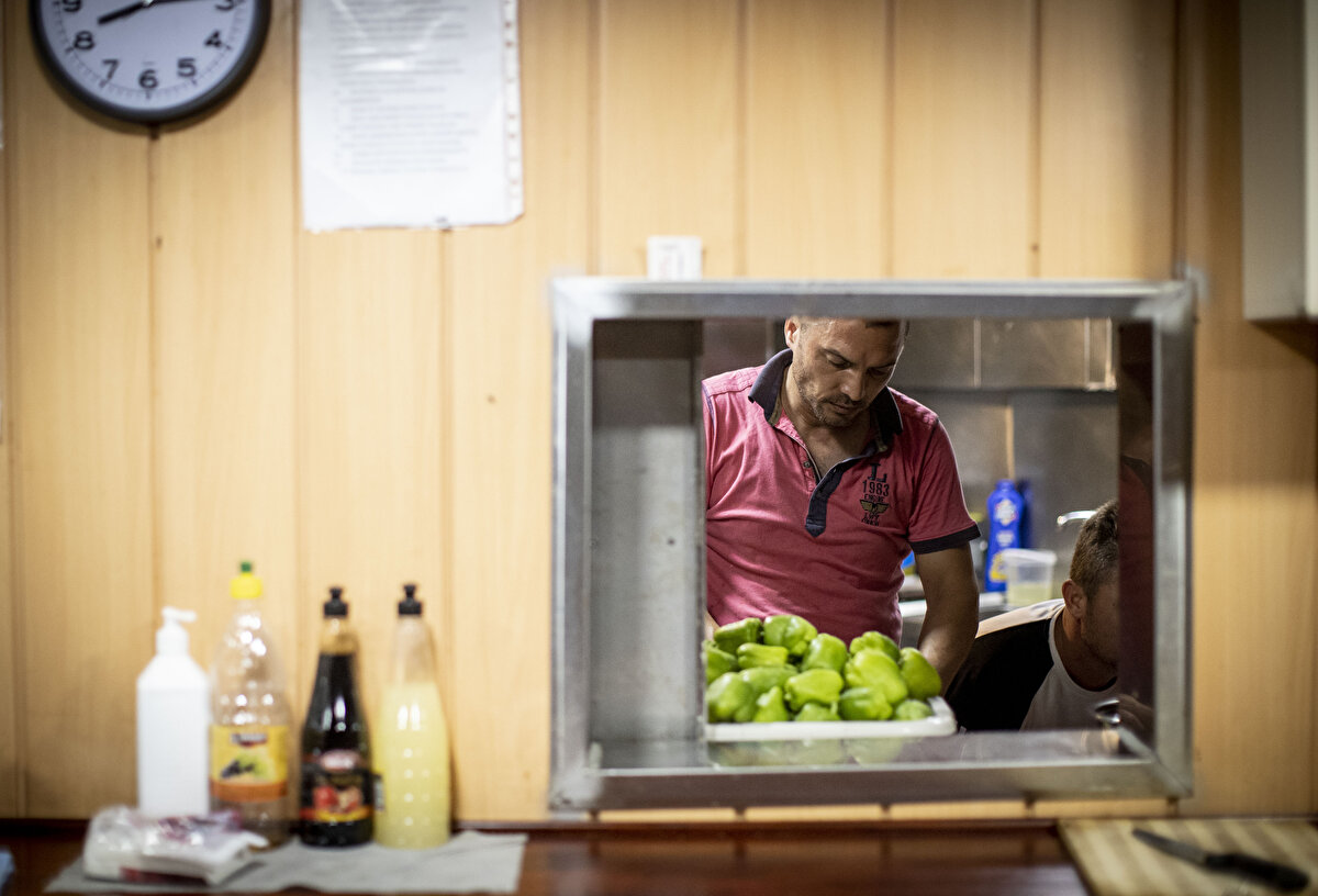 Teknenin aşçısı Hakkı Aydın, tekneyi yüzen bir eve benzettiğini kaydetti. "Yemek olarak bir standardımız yok. Ne uygun görüyorsak o gün için ona göre yemek hazırlıyoruz. Yeter ki insanlar aç kalmasın." diyen Aydın, teknede aşçılığın hem olumlu hem olumsuz yanları olduğunu anlattı.