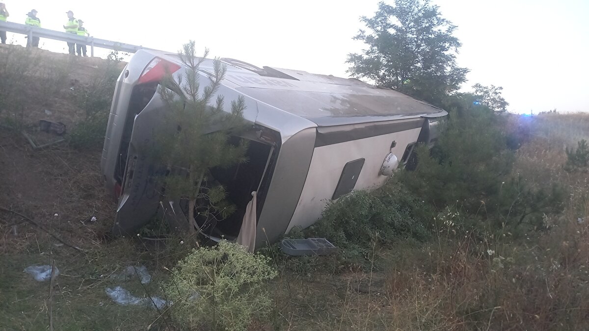 Balıkesir'de bir yolcu otobüsü yoldan çıkarak devrildi. Kazada 1'i ağır olmak üzere toplam 27 kişi yaralandı.