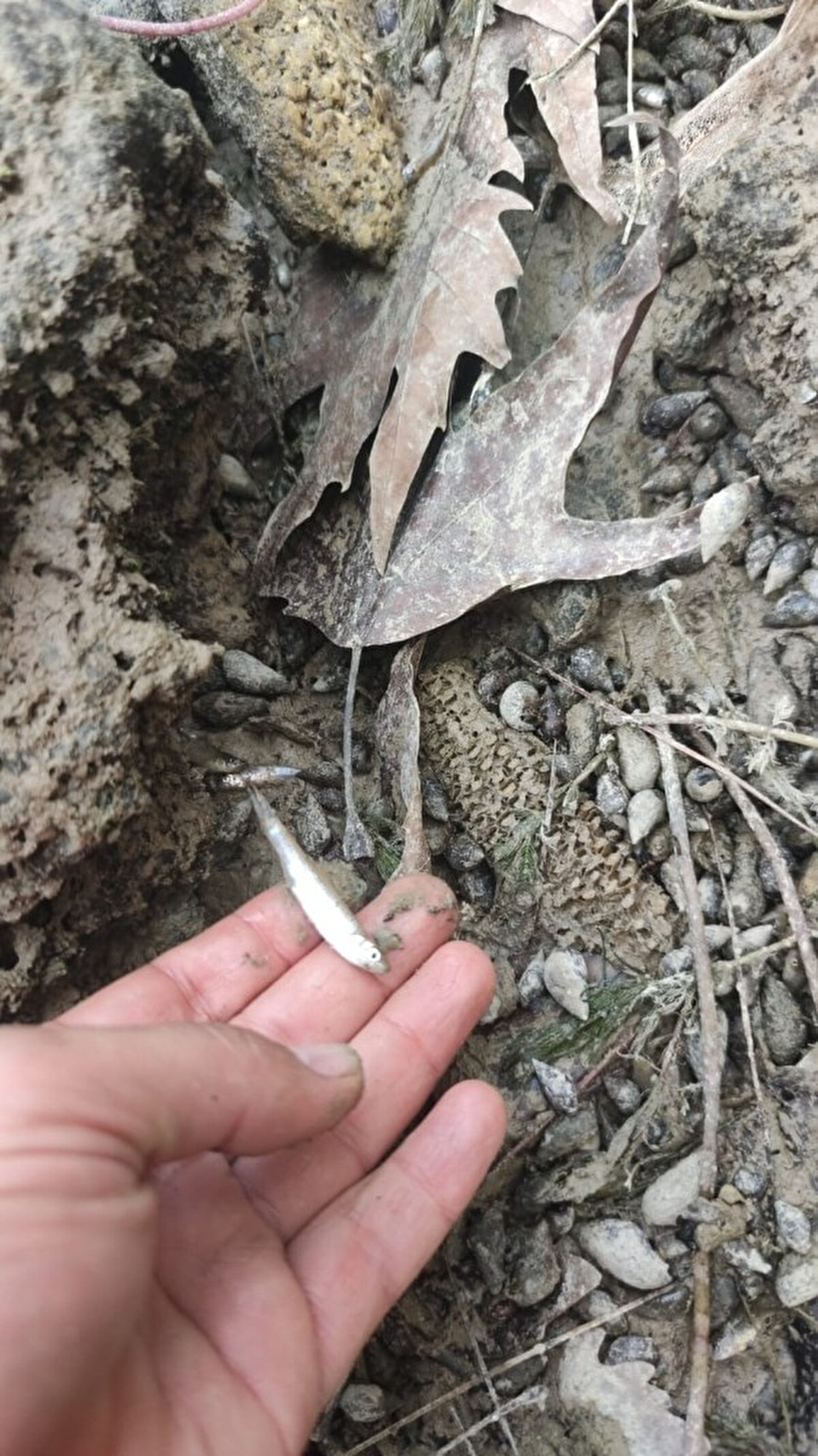 Bölgede esnaflık yapan Mehmet İnak, yılanbalığı, sazan ve kızılkanat yavrularının bulunduğu kola, hayvanların ölmemesi için hortumla su vermeye başladı.
