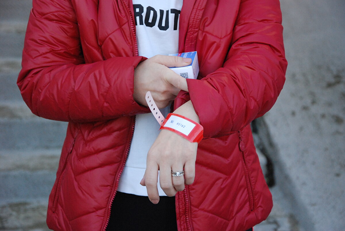 Ekipler, evde tedavileri devam eden pozitif hastalara kırmızı barkodlu bileklik, temaslılara ise beyaz bileklik taktı.