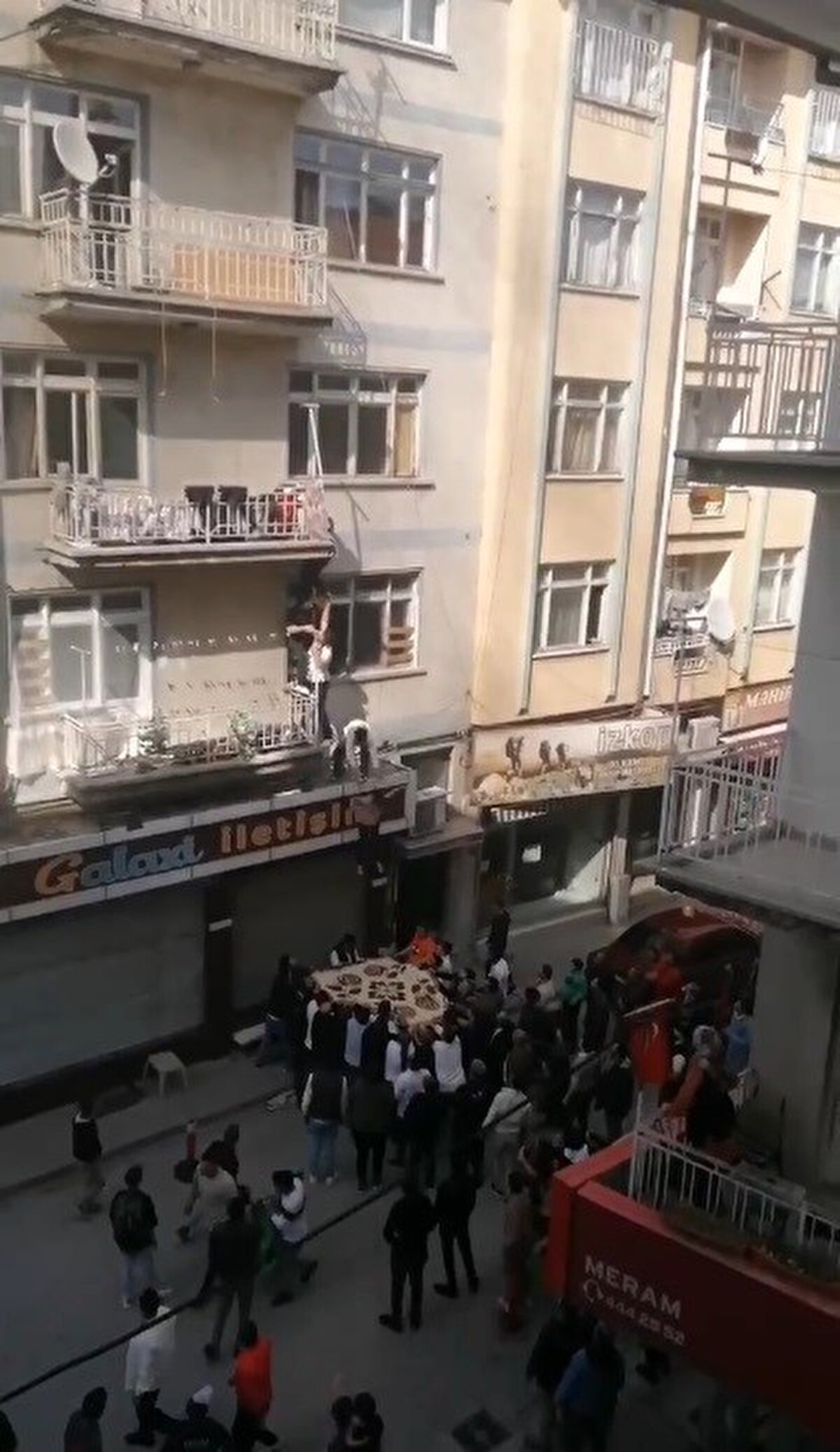 Konya'da 2 çocuğun hayatını kaybettiği yangın sırasında, dairede bulunan diğer aile fertleri balkondan aşağıya atladı. Ailenin, vatandaşların açtığı battaniyeye atladığı anlar cep telefonu kamerasına saniye saniye yansıdı...