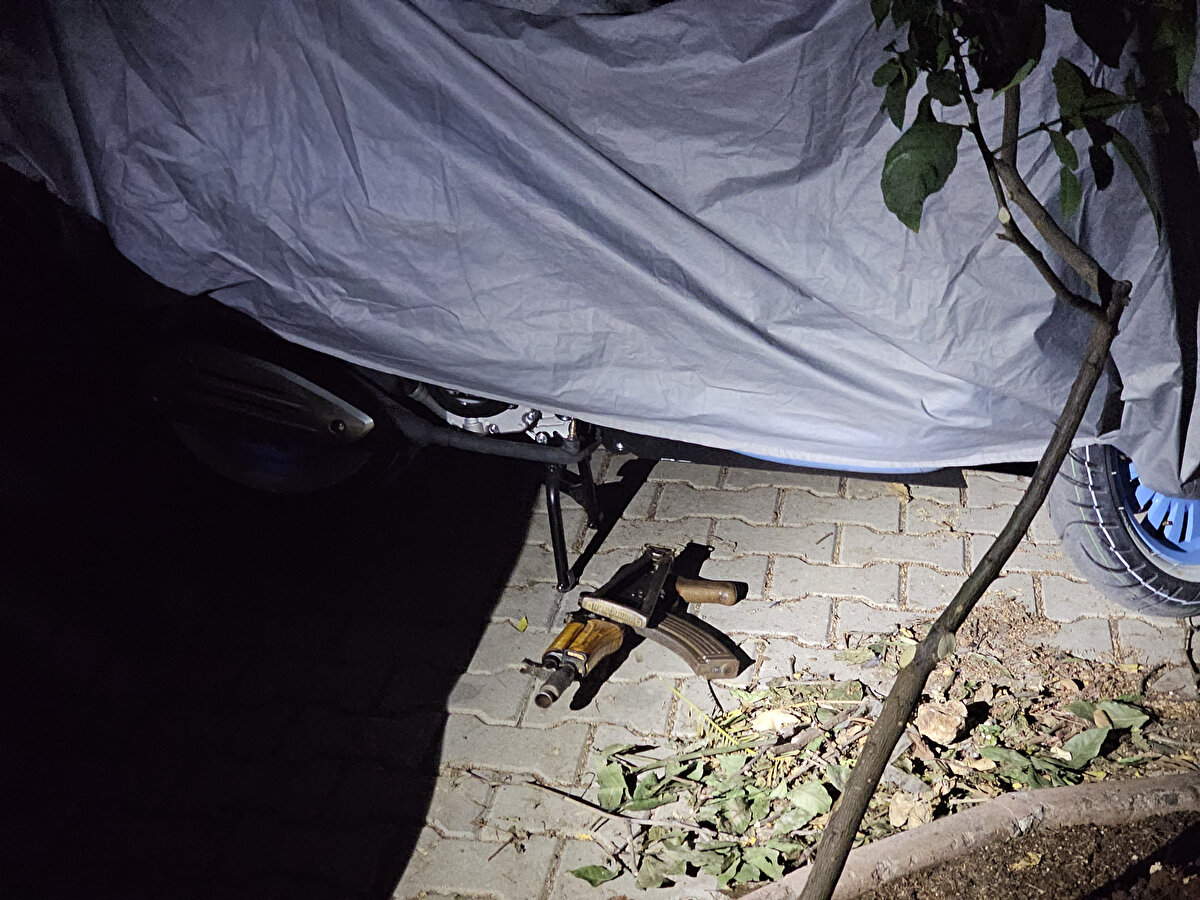 Adana'da motosiklet üzerinde elinde Kalaşnikof marka silahla ilerleyen iki kişi, mahalle bekçilerinin kendilerini fark etmesi üzerine, yaya olarak kaçmaya başladı. Ekiplerin takibi sonucu, şüphelilerden biri yakalanırken, silah ise bir apartmanın otoparkına atılmış halde bulundu. Şüphelilerin kullandıkları motosikletin ise çalıntı olduğu belirlendi.