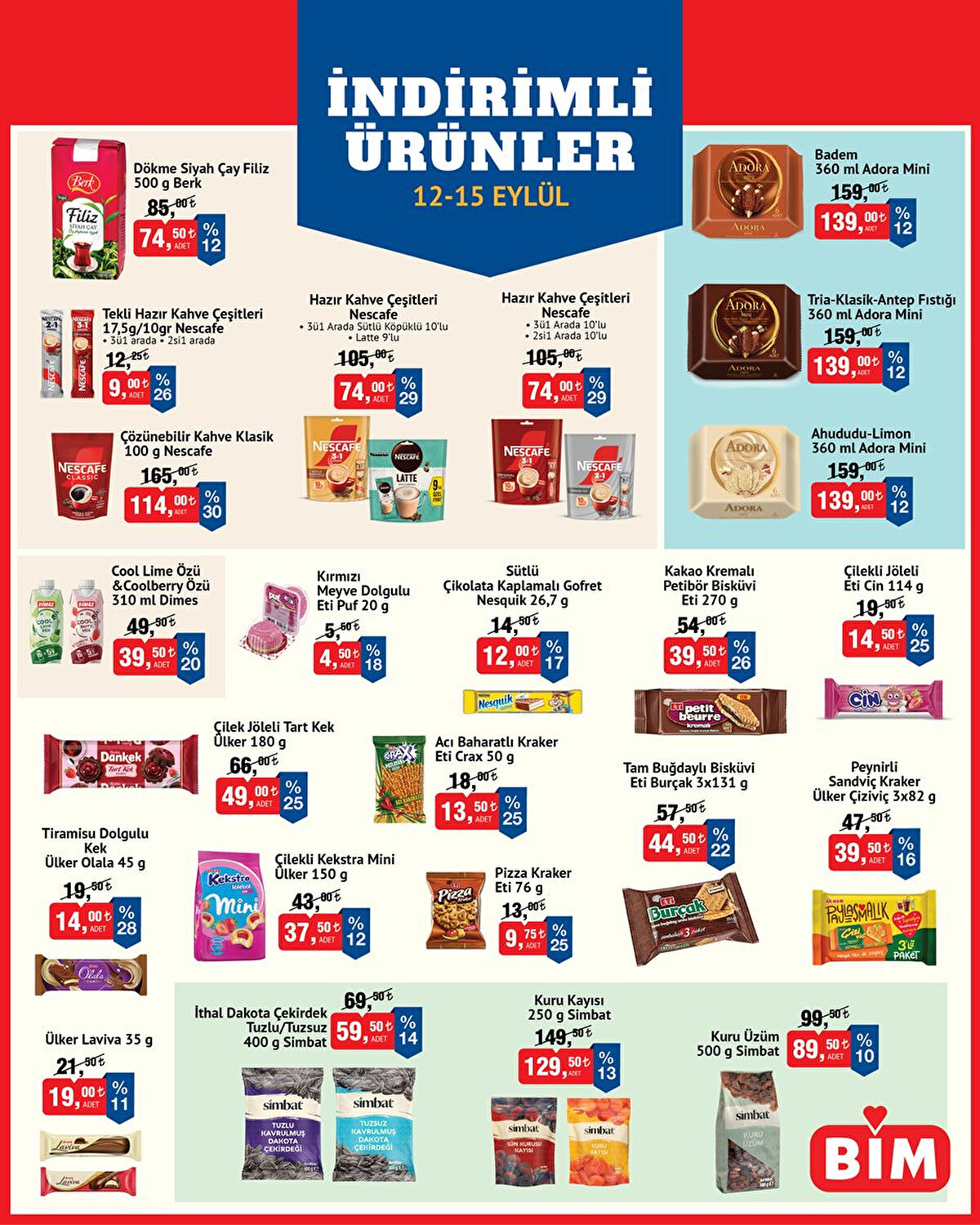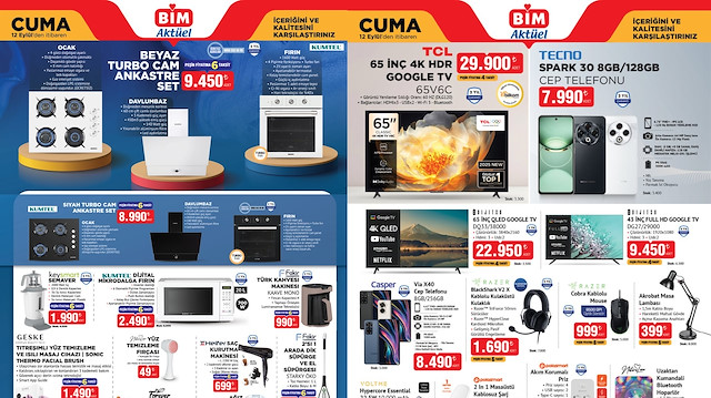 BİM 15 Eylül 2025 aktüel ürünler kataloğu yayınlandı. Salı günü başlayan indirimler hafta sonuna kadar devam edecek. Elektronikten mutfak eşyalarına, küçük ev aletlerinden dekoratif ürünlere kadar birçok seçenek sunuluyor. Bu hafta BİM'de cam ankastre set, davlumbaz, fırın, Türk kahve makinesi, mikrodalga fırın, masaj aleti, dik süpürge ve daha birçok ürün uygun fiyatlarla raflarda yerini aldı. İşte 12 – 15 Eylül BİM aktüel ürünler listesi ve fiyatları…