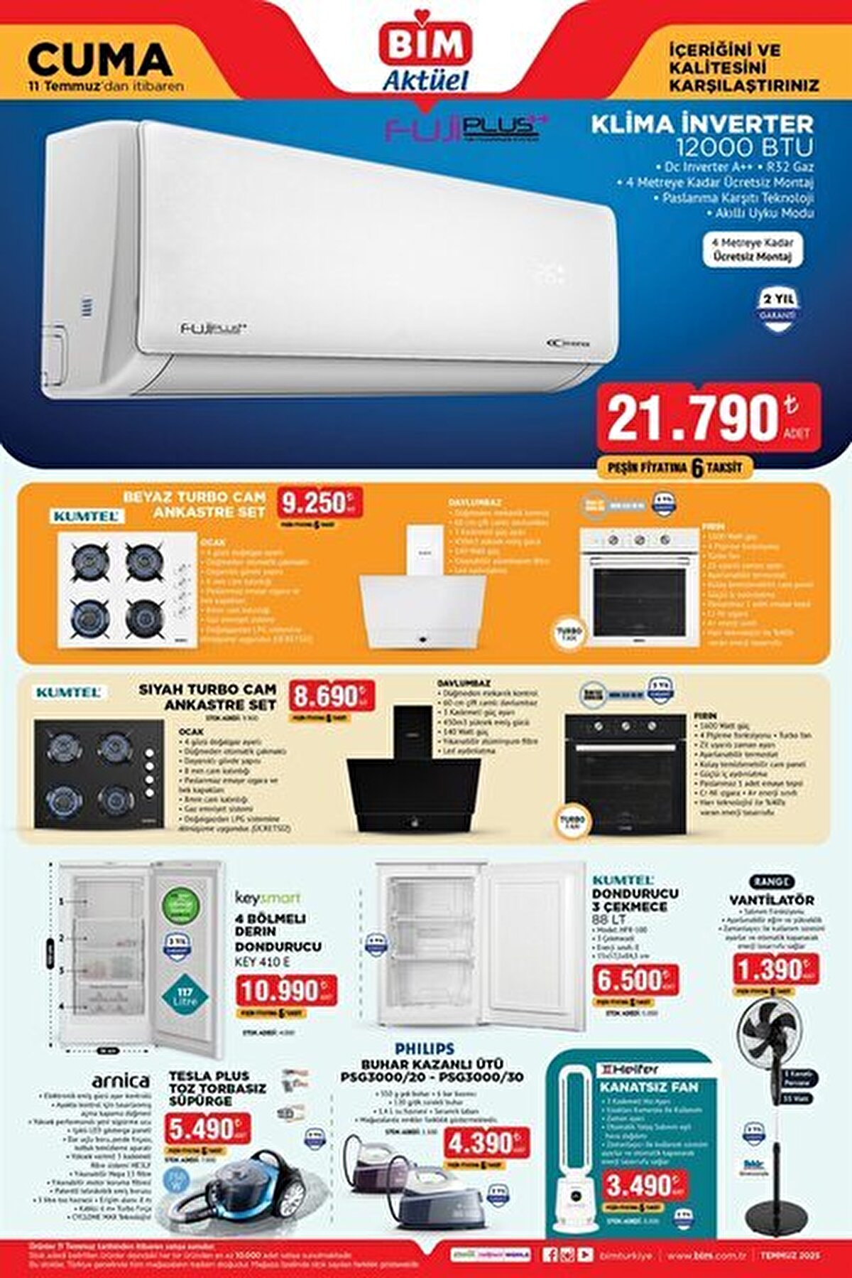 BİM 11 Temmuz 2025 aktüel ürünler kataloğu yayımlandı. Peki BİM aktüel ürünlerinden hangileri indirimde? Katlanır elektrikli bisiklet, valiz, QLED TV, Android tablet ve cep telefonu gibi birçok teknolojik ürün cazip fiyatlarla satışta... İşte 11 Temmuz 2025 BİM aktüel indirimli ürün kataloğu.